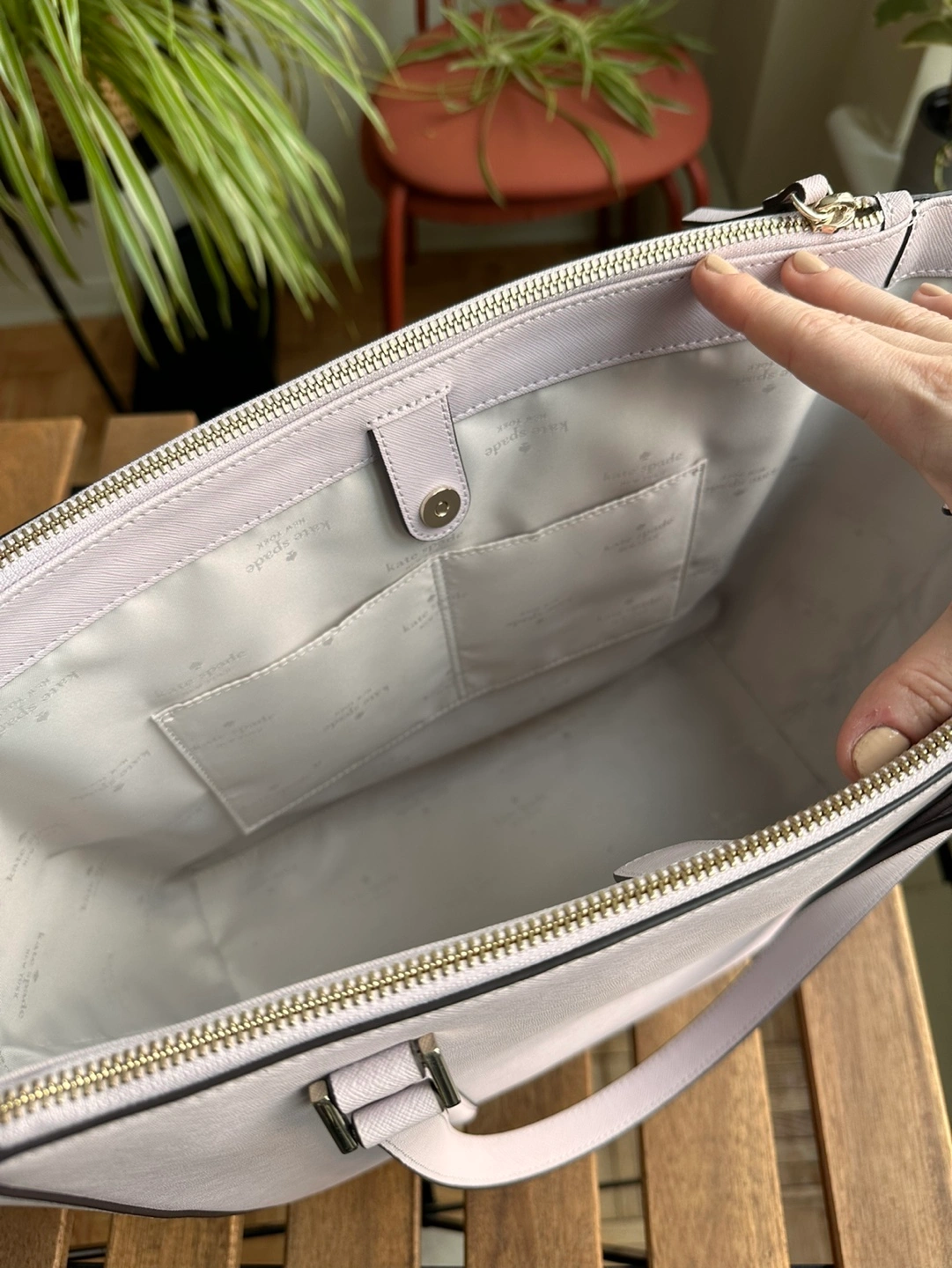 Brand new Kater Spade Shoudler Bag It is a perfect bag for work. Lilac color leather Has internal pockets + zip pockets on the side which it perfect for documents Never used It was a gift from my brother, but it is not my color. Retails is $568 plus taxes I am selling for less than 50% Pick up downtown