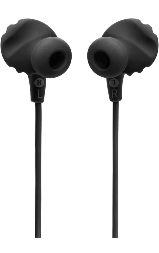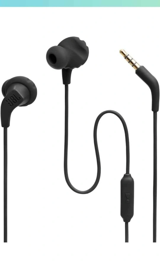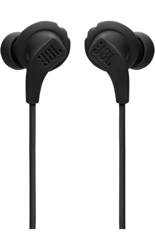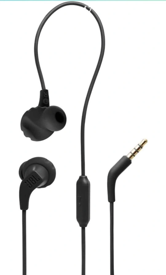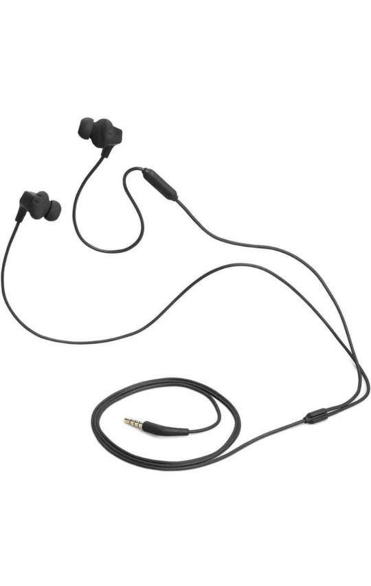 JBL wired earbuds. Black colour. 3.5mm jack. Good for workouts. Includes ear tips.