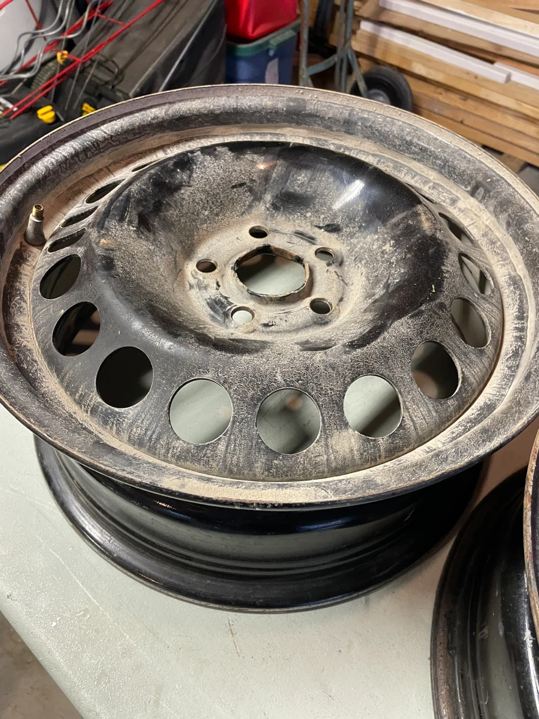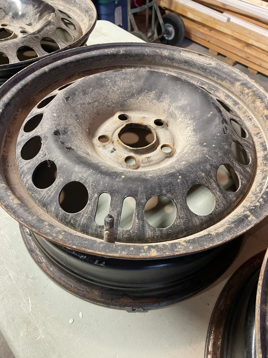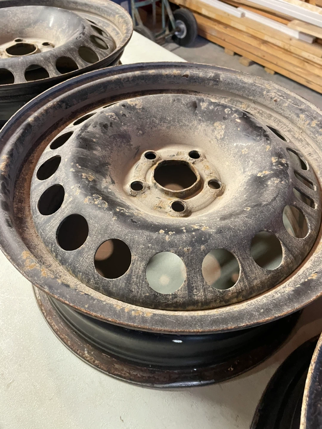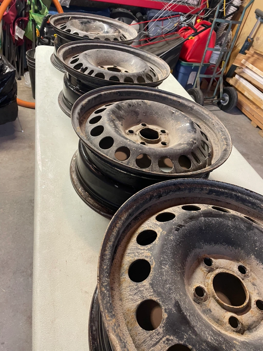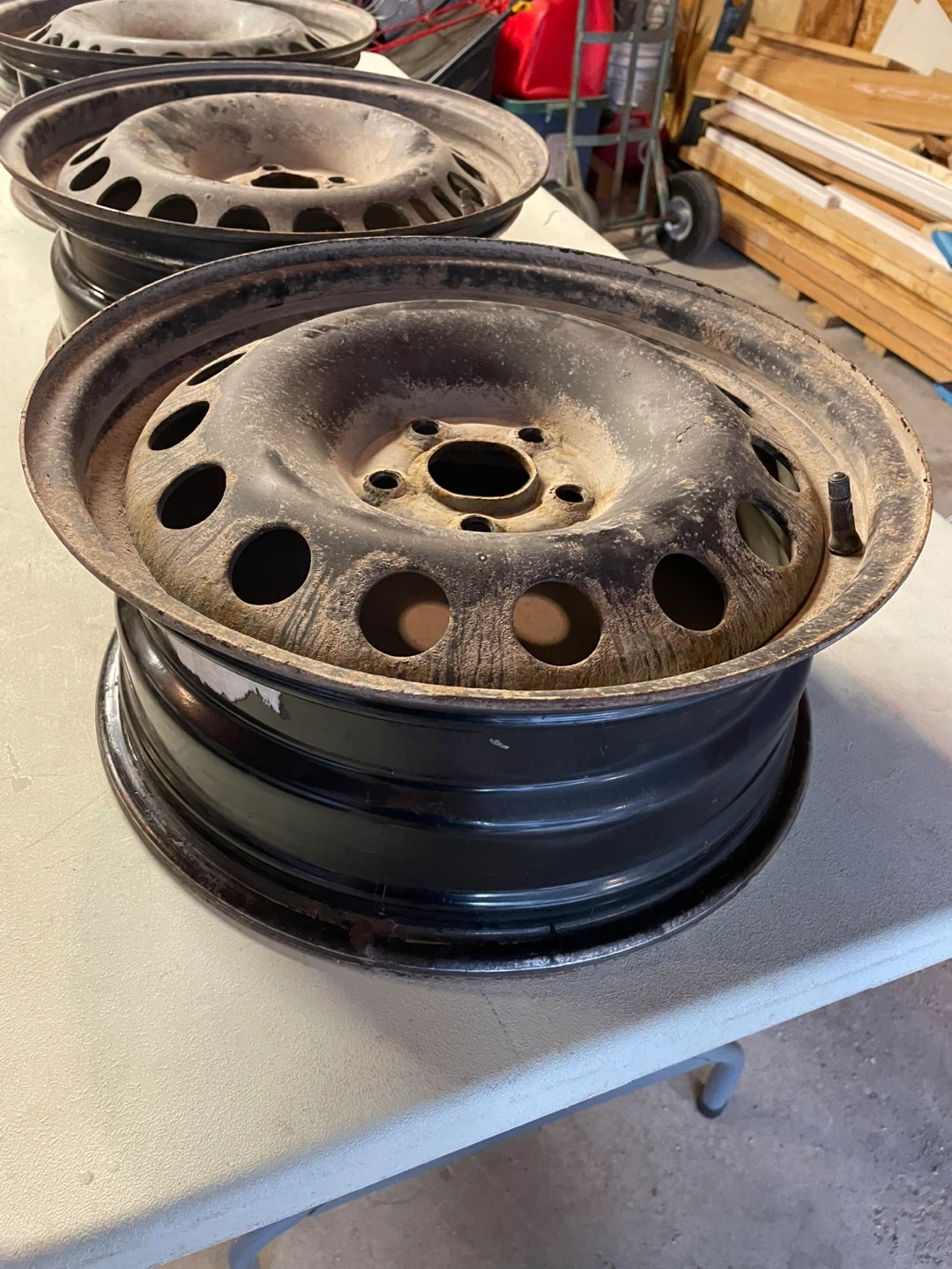 Set of 4 - Used on tire size 215-70-R16, bolt pattern 5x105 mm, good for many Chev vehicles. Pick up in East Kildonan, cash please