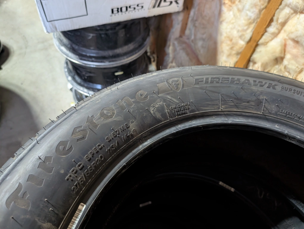 (4)-275/55R20 Firestone Firehawk Pursuit All Season Tires New Take Offs 100% Or Full Tread Left Tire Date Code "1424" Tires Only No Rims 4 Brand New With Tax And Tire Levy Fee Is $2060.76 Selling A Set Of 4 For $1350.00 Save Over $700.00 Located Near Concordia and Lagamodiere Mount/Balance Available By My Friend For $80.00 Total For The 4 Tires He is located 8 minutes away from my place