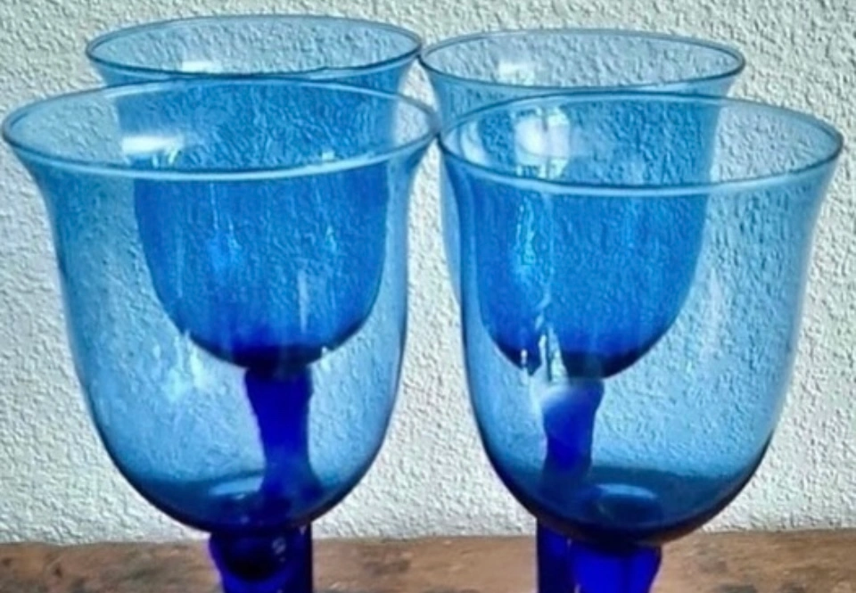 These large blue wine or water glasses would make a great addition to any table setting. They are in good condition with no chips or cracks. Pick up Steveston North.