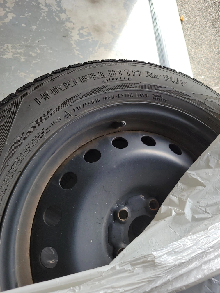 Selling a set of Nokian Hakkapeliitta R2 SUV winter tires, size 235/55R18. 18x7.5 5-114.3 Black steel rims. Lug nuts included. Was previously on 2017 Toyota Rav 4.