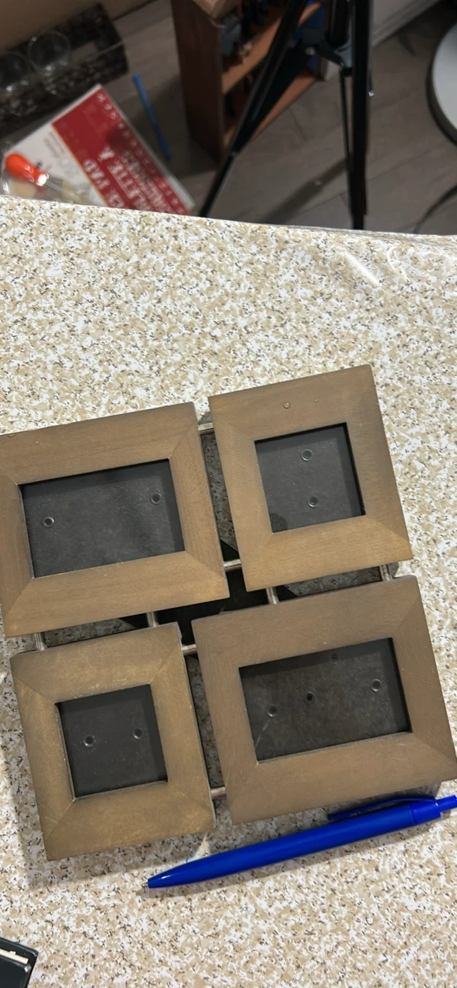 Selling a set of four small wooden picture frames! They are in great condition and ready to display your favourite photos. The frames have a neutral colour that would suit any decor