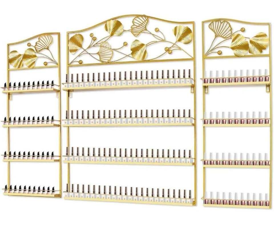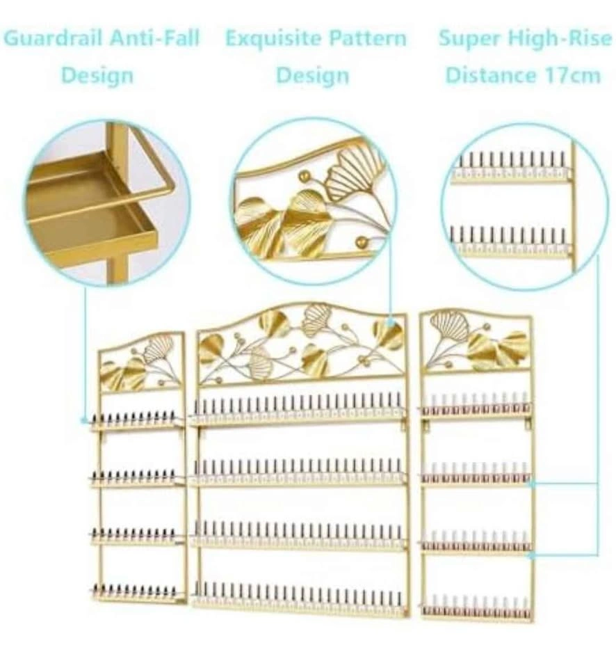 4 Tier Metal Wall Mounted Nail Polish Storage Racks, Gold