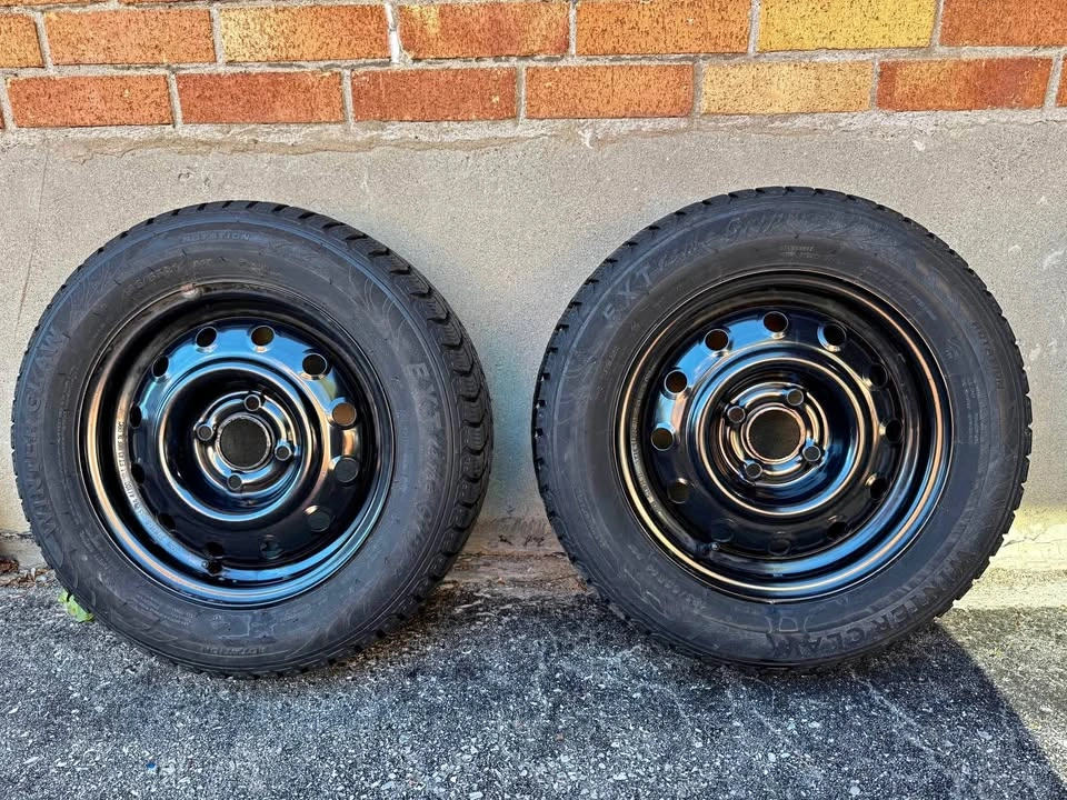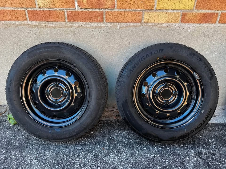 4 winter tires on nearly new steel rims. 2 sets of pairs, all 185 65 R14: 1 pair (2 tires ) of Winter Claw Extreme Grip - used 2 winters. 1 pair (2 tires) of Lanvigator Winter Grip - used 1 winter. Rims used only 1 season. $400 for all 4 tires, great condition with rims. Pick up near Bayview & Elgin Mills.