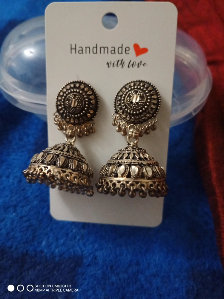 Beautiful pair of handmade jhumka earrings. Oxidized silver finish. Intricate detailing. Perfect for everyday wear or special occasions.$20.00- cash only