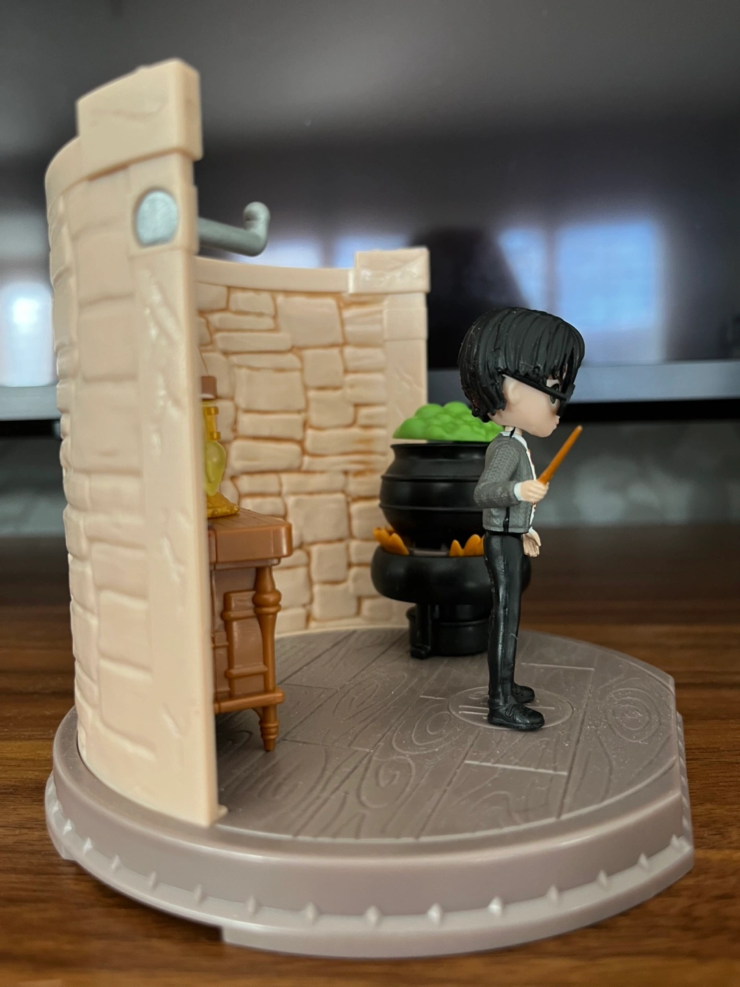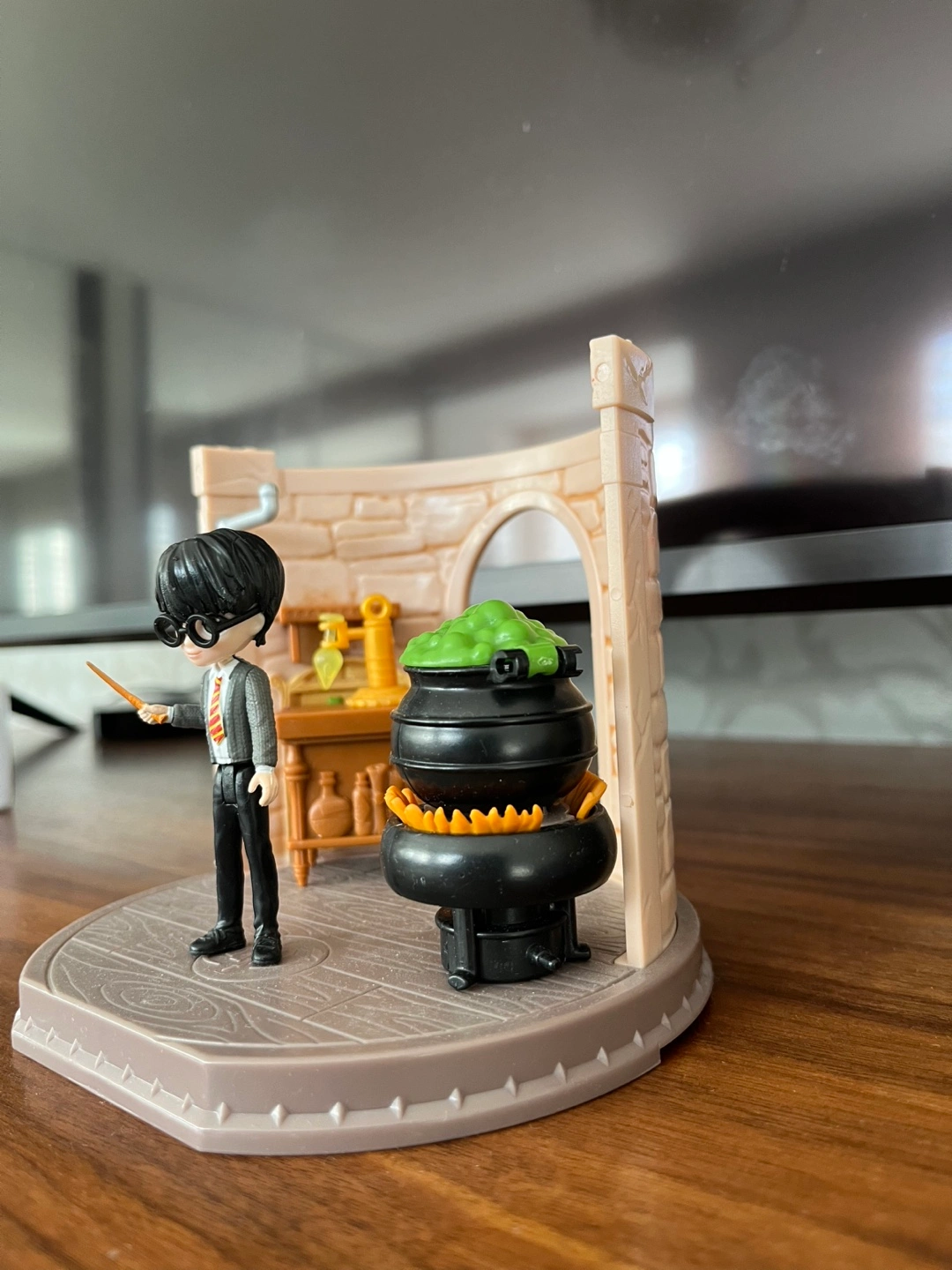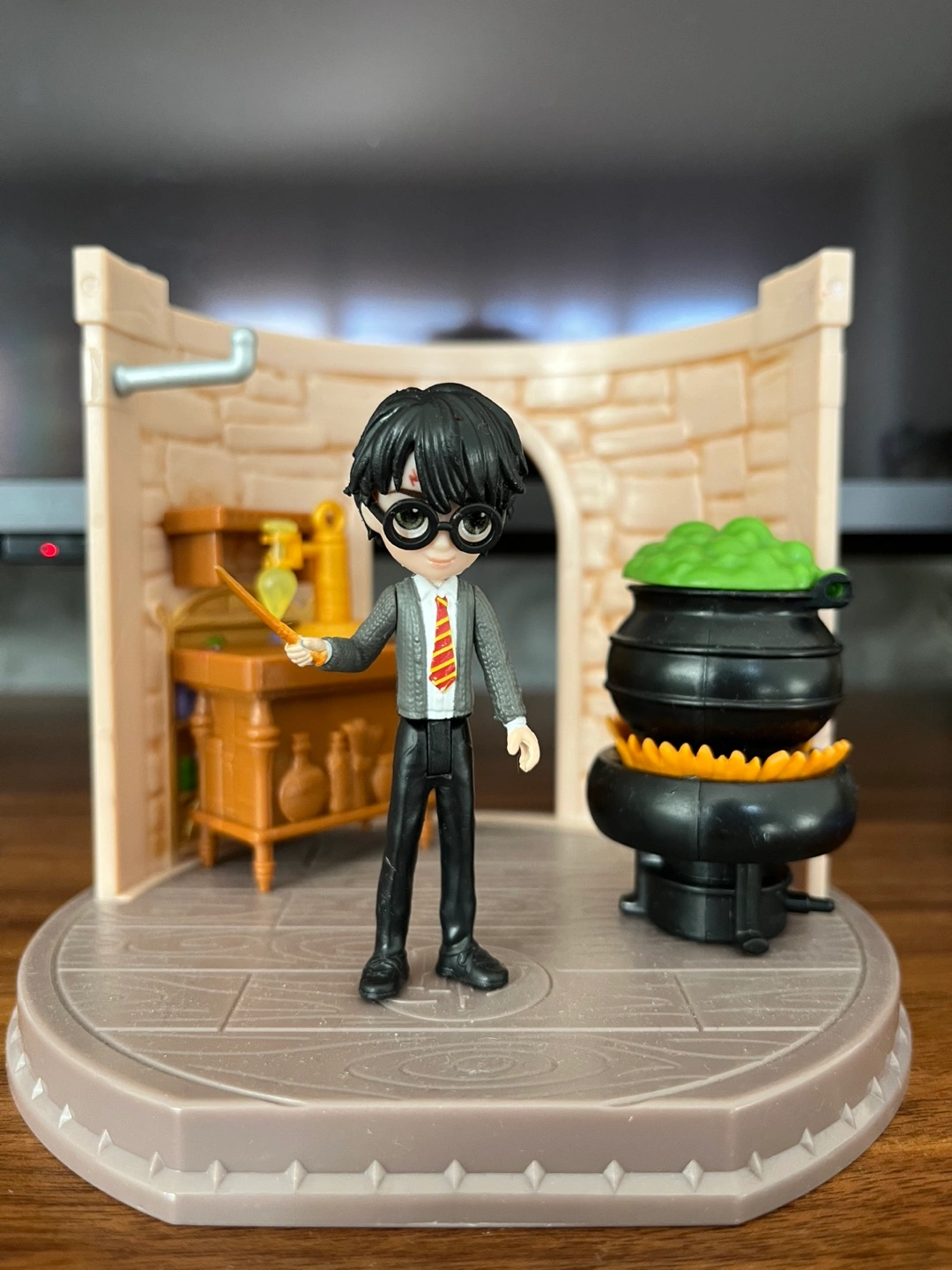 Adorable Harry Potter Minis playset. Features a small Harry Potter figurine, cauldron, potion ingredients, and a miniature potion station. Great for collectors or children. No original packaging, the figure and set are in great condition.