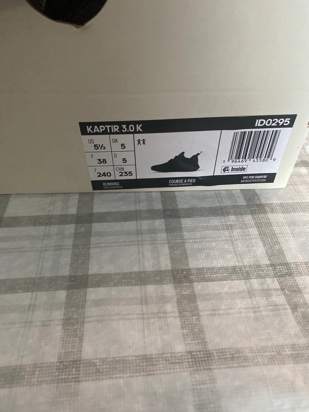 Boys Adidas Kaptir 3.0 K running shoes. Size 5.5. Black colour. Good condition. Lace-up closure. Breathable mesh upper. Durable outsole.
