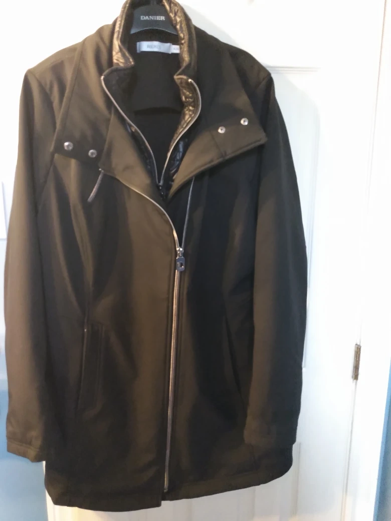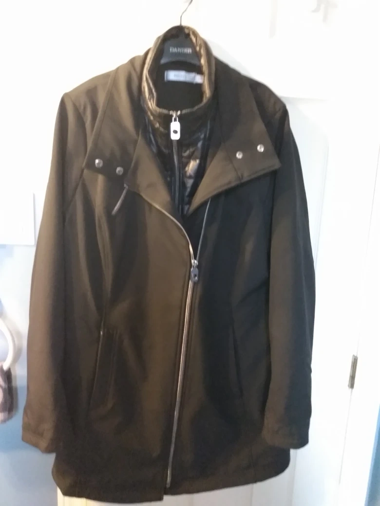 Women's softshell jacket. Black colour. Features front quilted liner. Asymmetrical zipper closure. Pockets. Great for layering. Can be used for winter (Pick up only)
