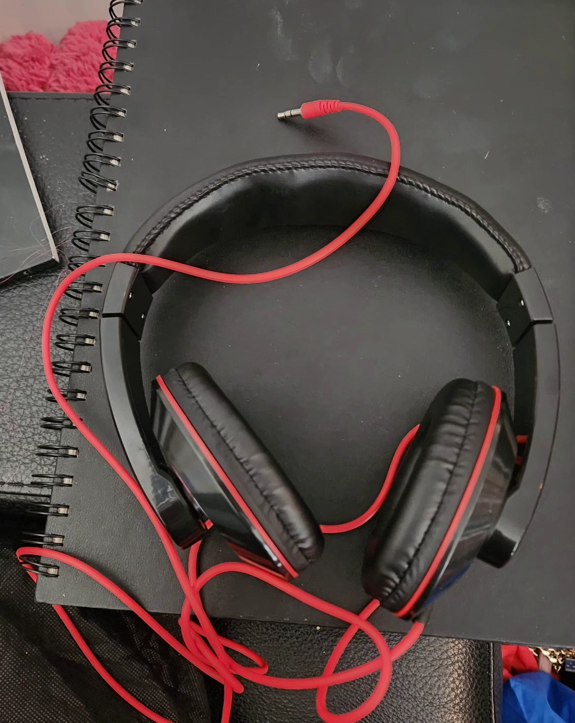Free Wired over-ear headphones. Black with red accents. 3.5mm audio jack. Was checked, working condition. * No Holds or Reserves * * First Come First Serve * * Pickup Only * * Serious Inquiries Only *