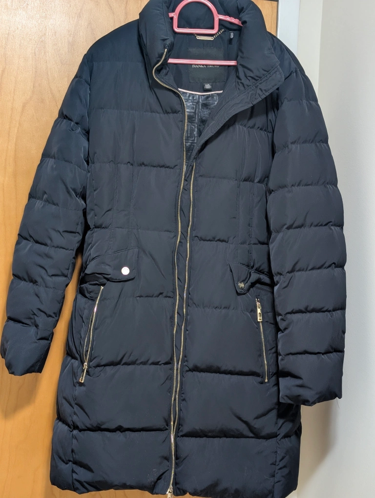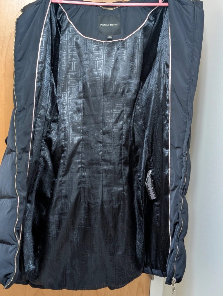 This chic Ivanka Trump puffer jacket is gently used and in fantastic condition. Ideal for staying warm and stylish during colder months, its large size offers a perfect fit. With its sleek design and premium quality, this jacket is both cozy and fashionable. Comes from pet free and smoke free house