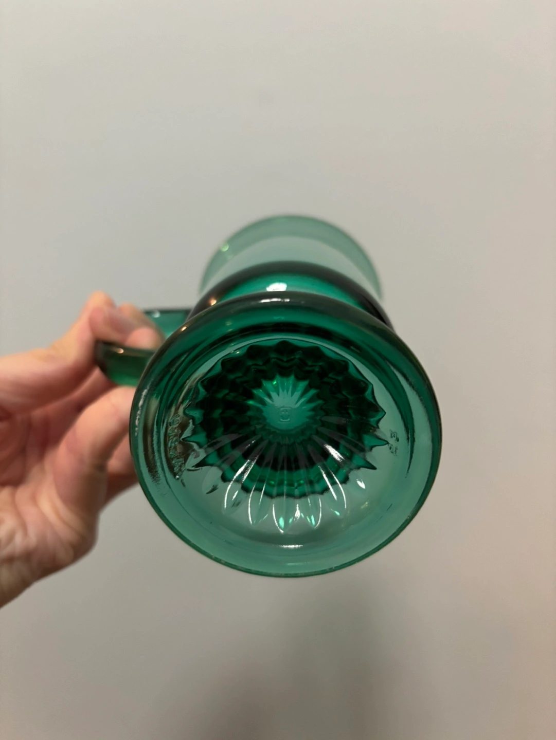 Pedestal mug. Dark green glass. Perfect for coffee or tea. Used condition. Anchor Hocking. Teardrop Juniper Libbey.