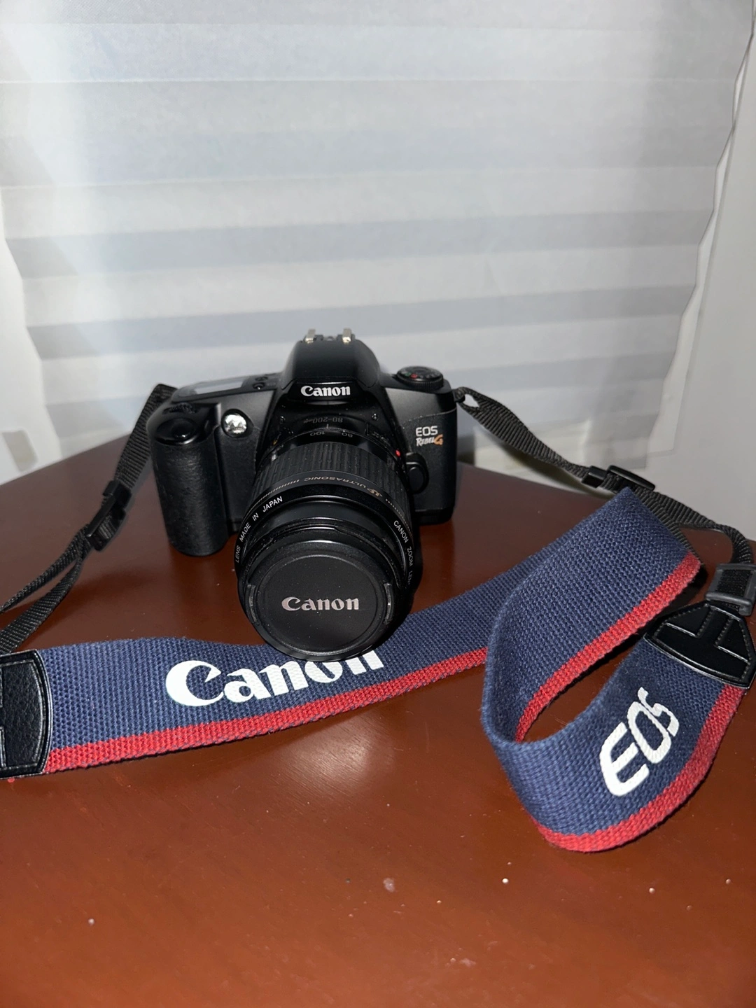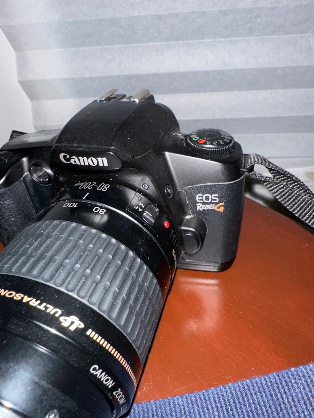 Vintage Canon EOS Rebel G 35mm film camera. •Includes 80-200mm lens. •Canon branded neck strap. Battery not included: DL CR123A 3V x 2 Great for camera collector or photography enthusiasts.