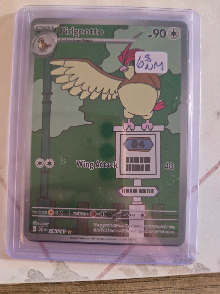 Pokemon card featuring Pidgeotto. Number 208/197. Shows Wing Attack move.