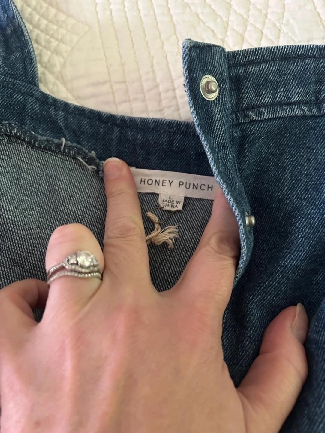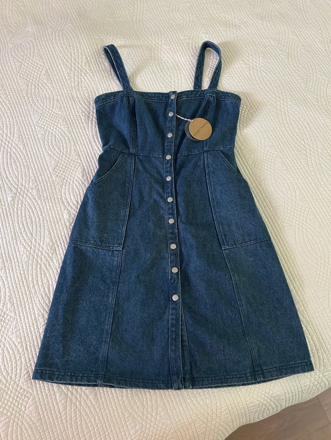 Cute button-front denim dress with pockets 😍 Tag says Large but it fits Medium! Pick up in the Beaches at Queen and Victoria Park.