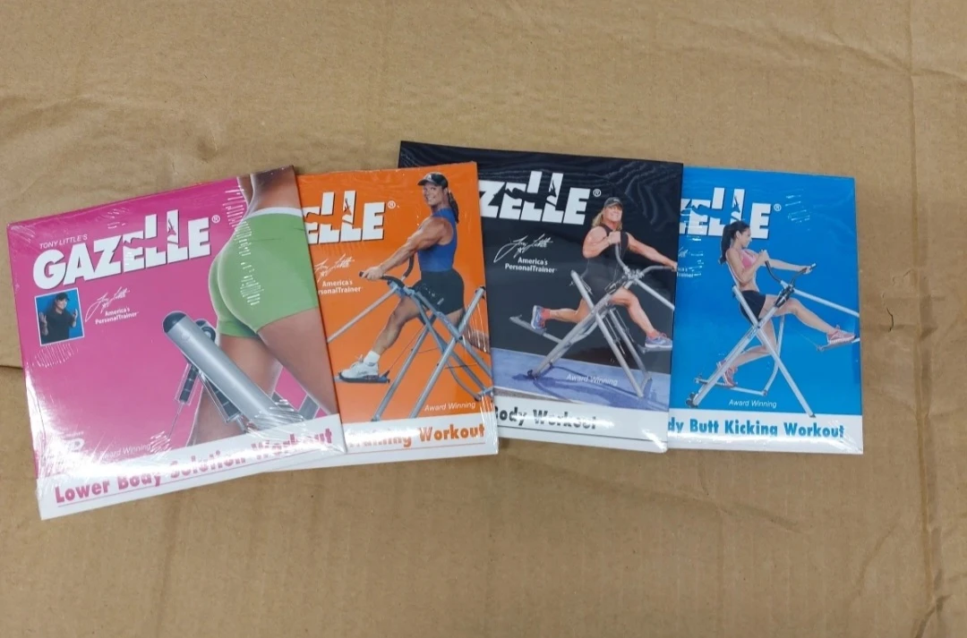Gazelle Power Plus and 4 Workout DVDs Adjustable Power Pistons with 6 levels of hydraulic resistance Tighten and tone every major muscle group in your body Patented dual-action split suspension provides a complete range of motion and freedom of movement Low-impact workout for less stress and strain on your body Great for all fitness levels 4 Workout DVDs Best Body Workout Total Body Butt Kicking Workout Total Body Cross Training Workout Lower Body Solution Workout Ultimate Mind & Body Workout Quick Shape Total Body Workout Condition brand new Boxes sealed but packaging in distress 150 Bermondsey rd Delivery available with extra fee