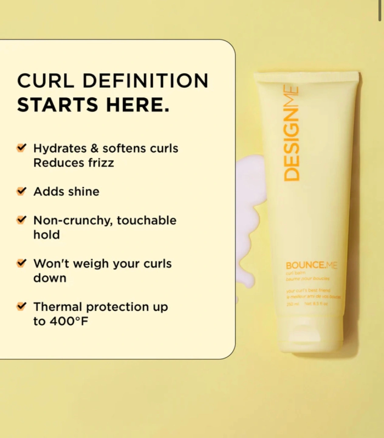 Brand new! Multiple available Salon grade 250 ml Pick up near Bathurst and Lawrence A multi-tasking curl cream that hydrates, reduces frizz, and adds shine for bouncy, defined curls. Enriched with argan oil, BOUNCE.ME curl balm enhances your natural texture with a non-crunchy, buildable hold, ensuring lasting shape and bounce. With heat protection up to 400°F, it also protects your curls from dryness and breakage caused by heat styling. Say hello to healthy, defined curls! Hydrates curls with Argan Oil Reduces frizz & adds shine Non-crunchy, touchable hold Won't weigh your curls down Heat protection up to 400°F