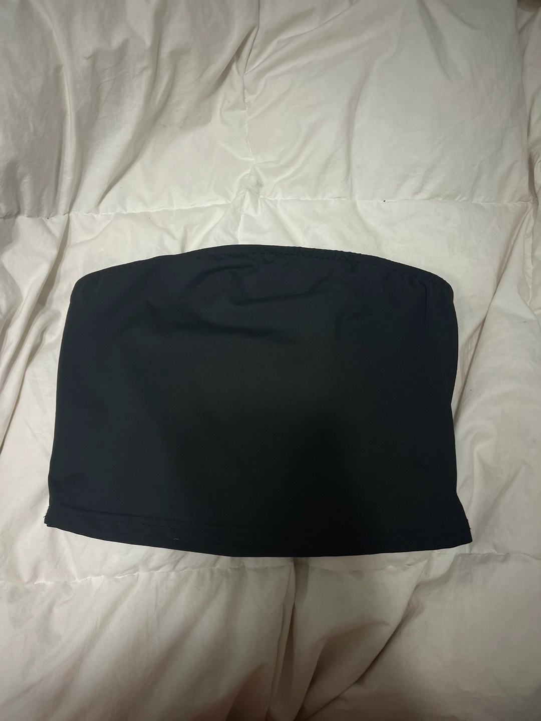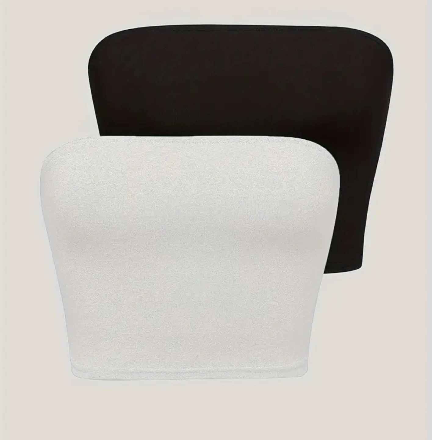 Pair of tube tops. One black, one white. Simple design. Good for layering or wearing alone.