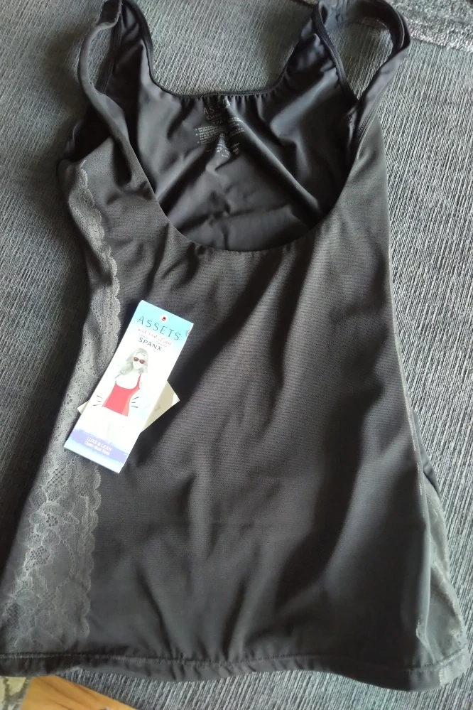 Black shaping tank, open bust design. Lace detail. Size Large. New with tags. very snug while tugs in tummy and love handles💗 brand new and never worn. sfpf home. pick up Weston rd@401 may accommodate at various locations within distance only.
