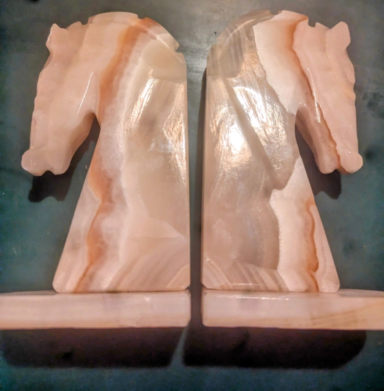 Set Of Two Marble donkey / Horse heads. 6 Inches height X 3 Inches Wide. Made In For Holding Books. Magazines, Literature, or for decor. Condition: New, Unused.