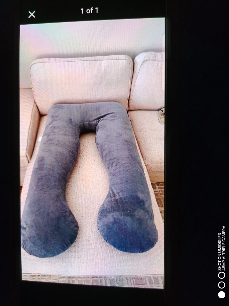 Dark grey u-shaped body pillow. Suitable for pregnancy or side sleeping. Soft, plush material. used but in good condition.