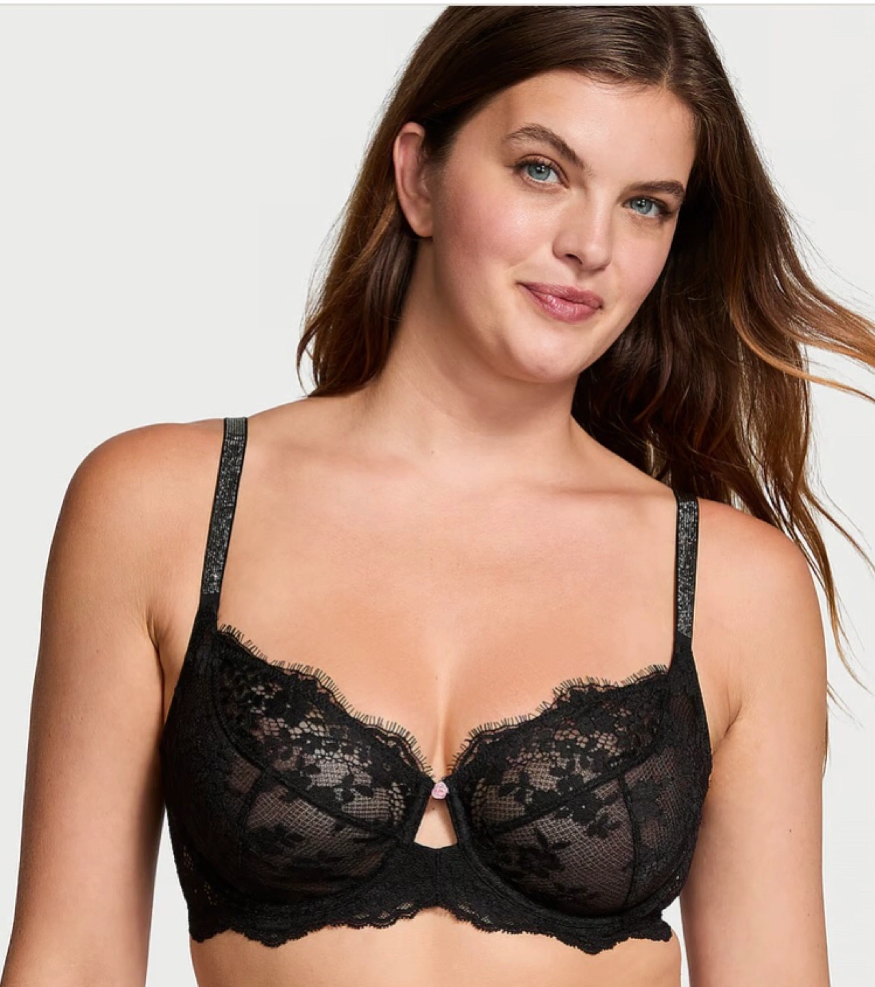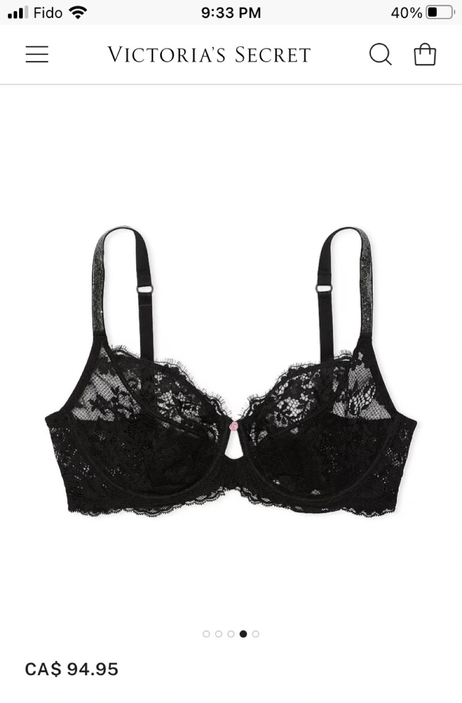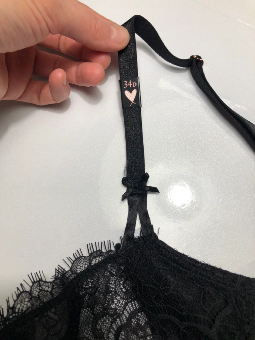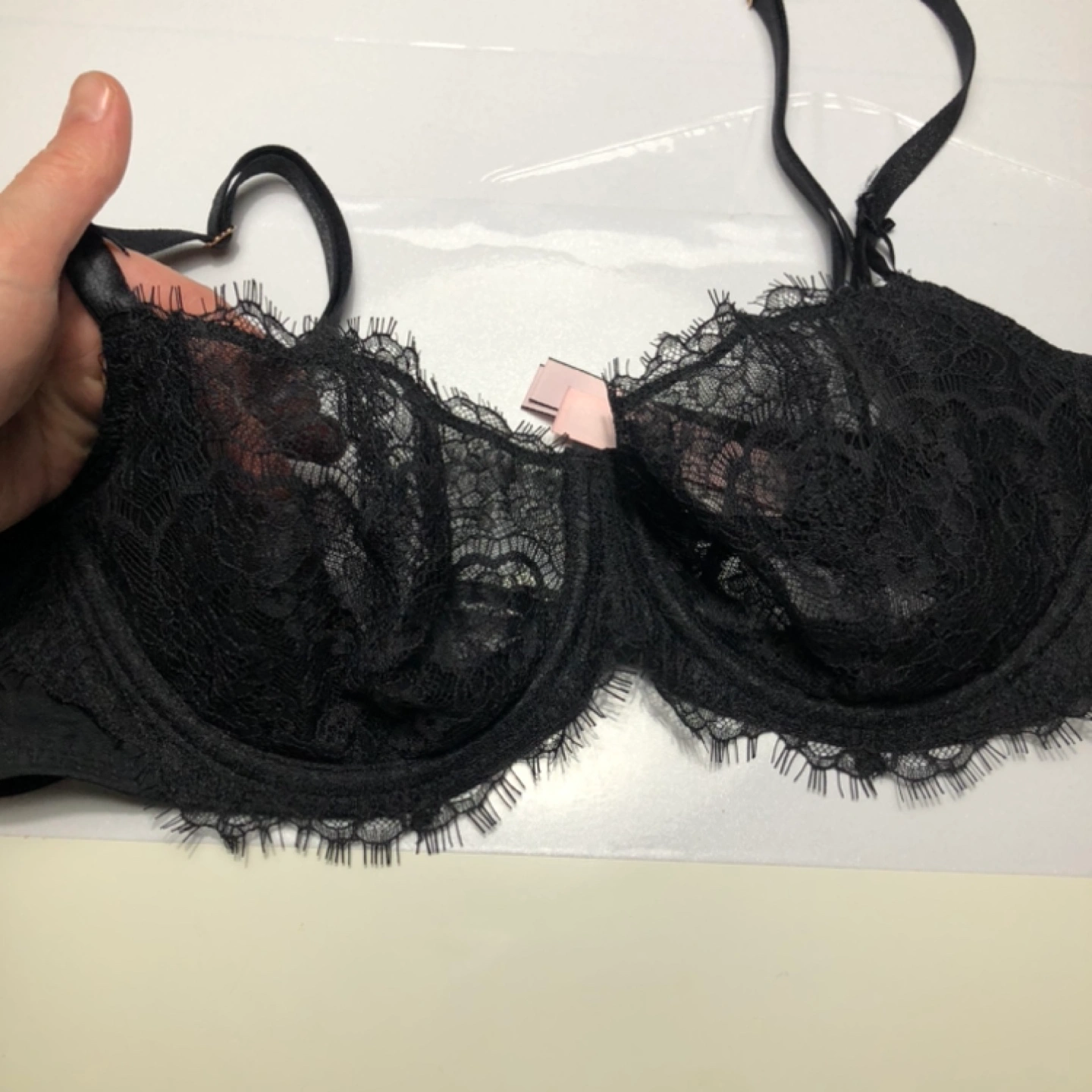 Gorgeous black lace bra. Unlined, push-up style without padding, for a sensual look. Size 34D. New with tags. Last two pictures are of a very similar style bra to offer an idea of the fit.