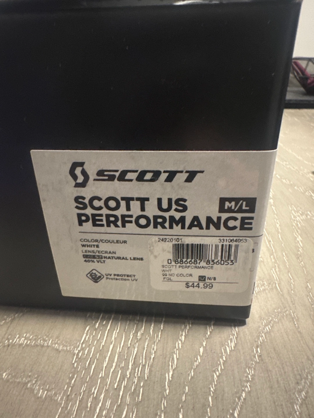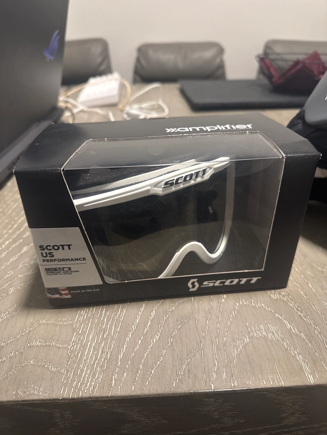 New Scott US Performance goggles. White frame, natural lens. Medium/Large size. Made in the USA. UV protection.