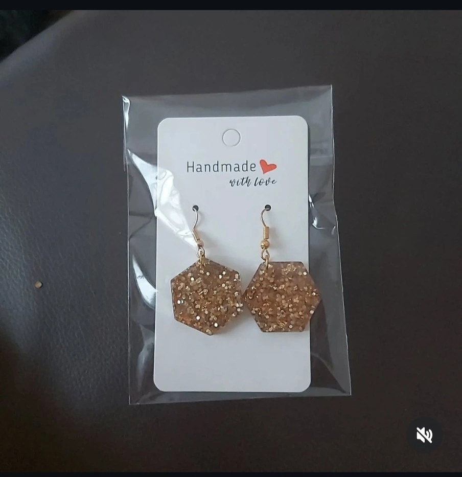 Handmade gold glitter hexagon earrings. Gold hooks. Unique and stylish. Gold is trending now a day . Every body would like to buy this.$15.00