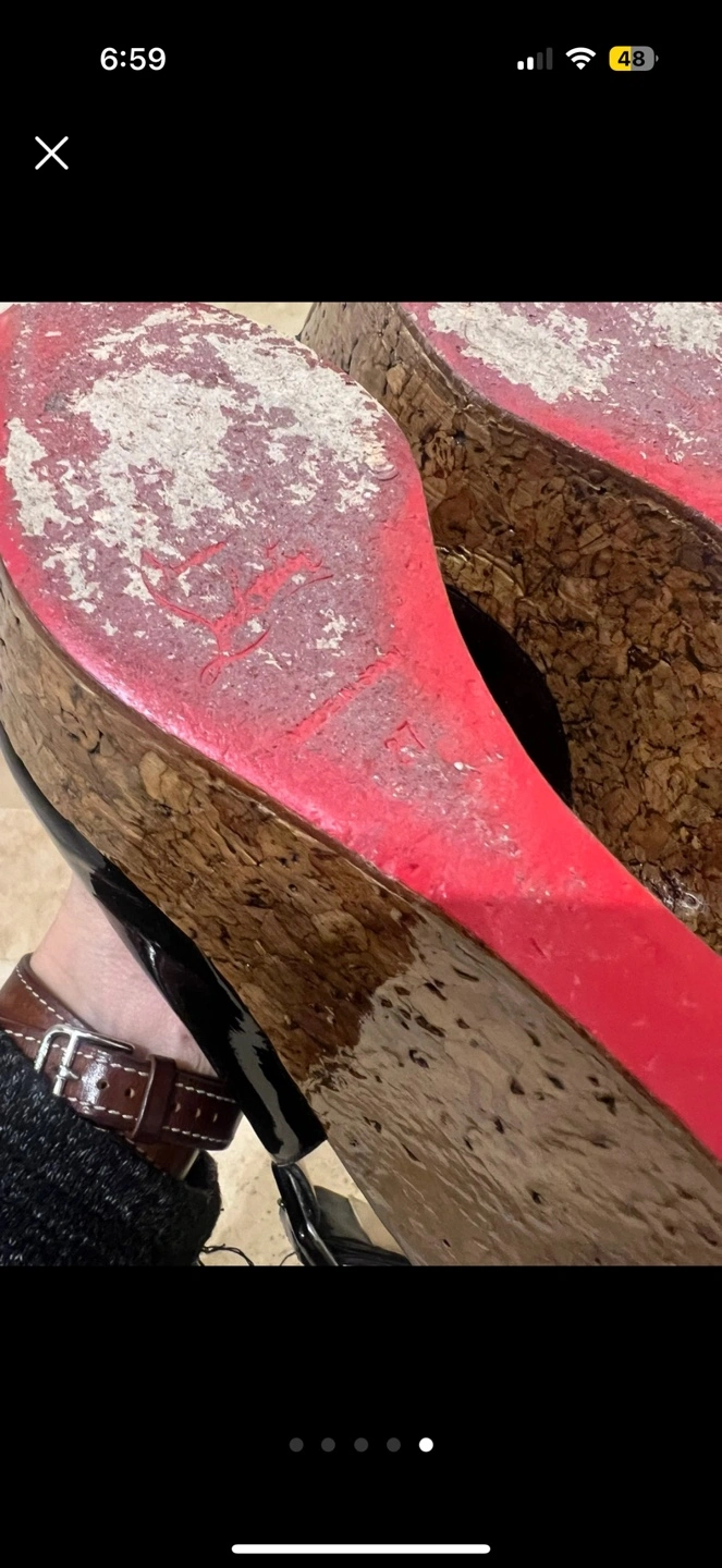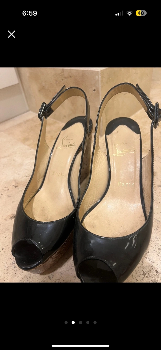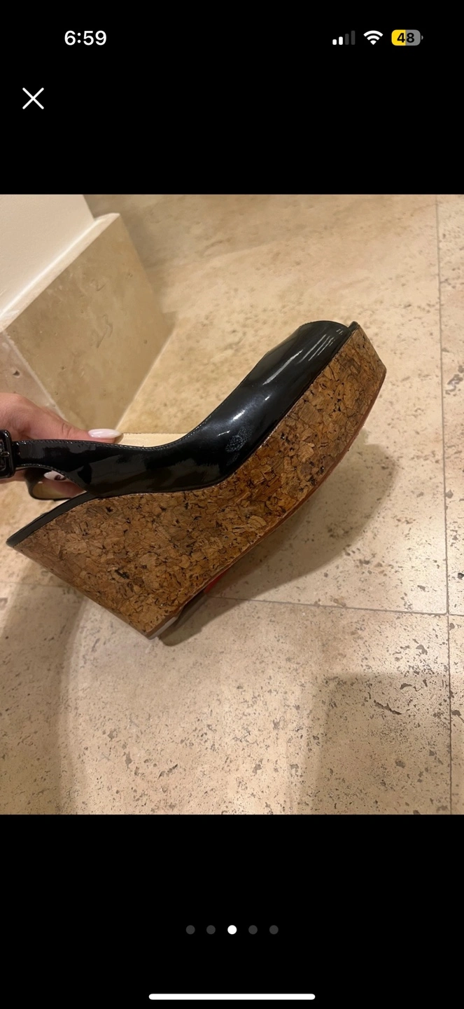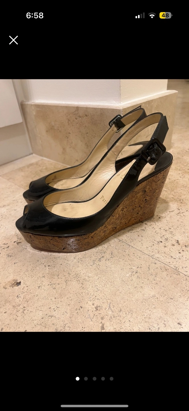 Authentic Christian Louboutin black cork wedge heels in good condition. Size 37 european. Fits true to size
