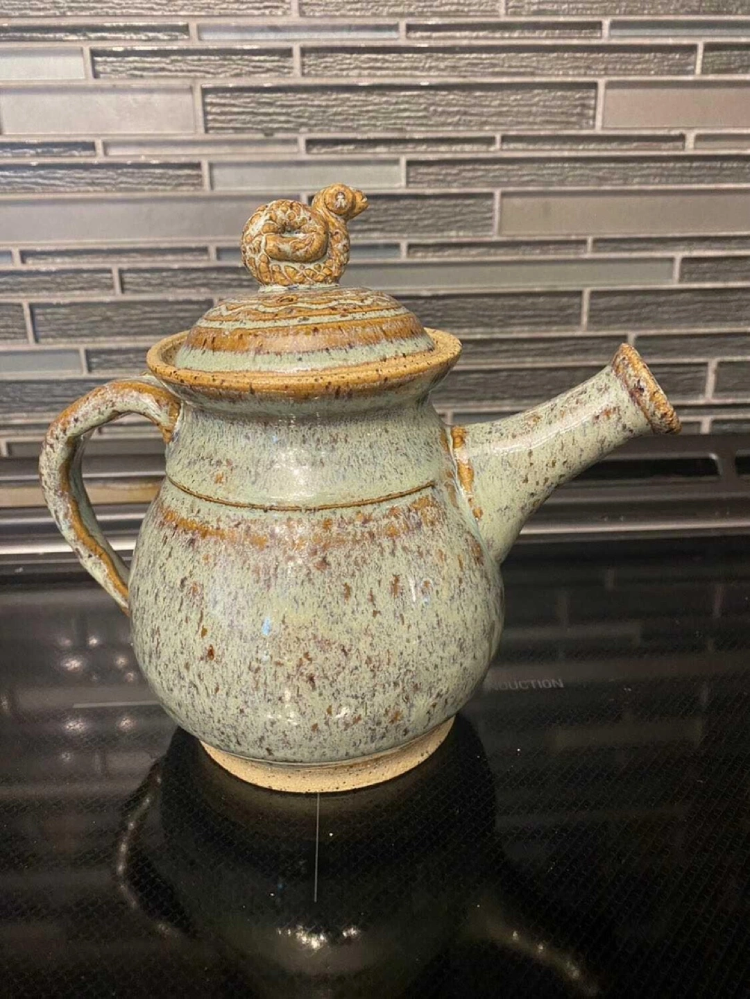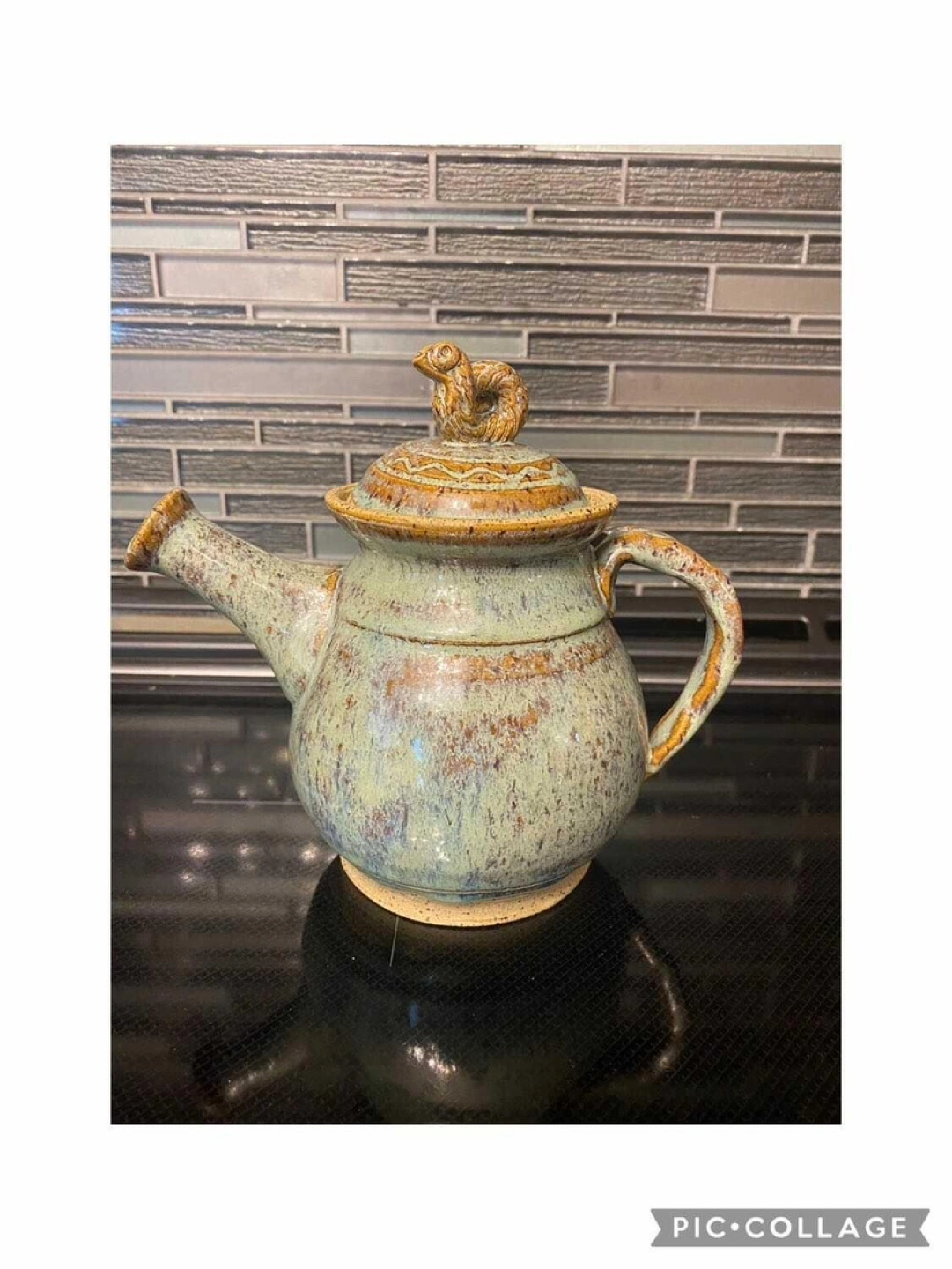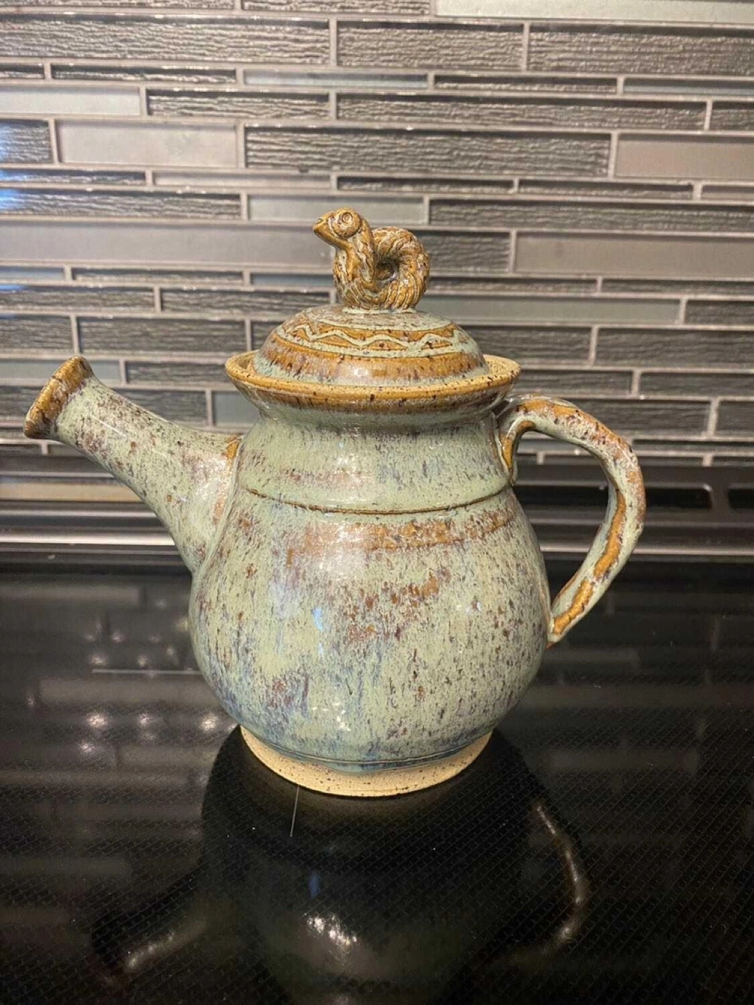 Stoneware Clay Ceramic Glazed Pottery Teapot Add a touch of charm to your tea time with this high-quality stoneware teapot. Measuring 7 inches by 4 1⁄2 inches by 6 1⁄2 inches, this teapot features a stunning blue and brown ceramic glaze that complements its elegant design. The teapot’s unique lid is adorned with a delightful snail motif, adding a whimsical touch to its sophisticated appearance. The durable stoneware construction ensures excellent heat retention and long-lasting use. Ideal for both everyday enjoyment and special occasions. From a pet/smoke-free home in Park Ridge. Cross-posted for your convenience.