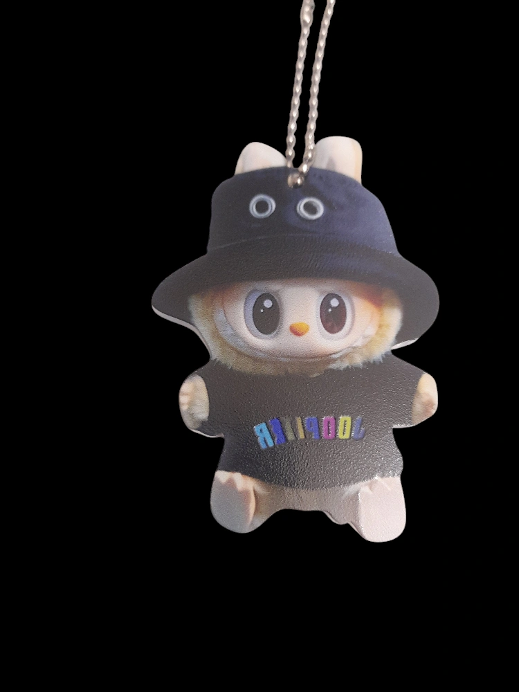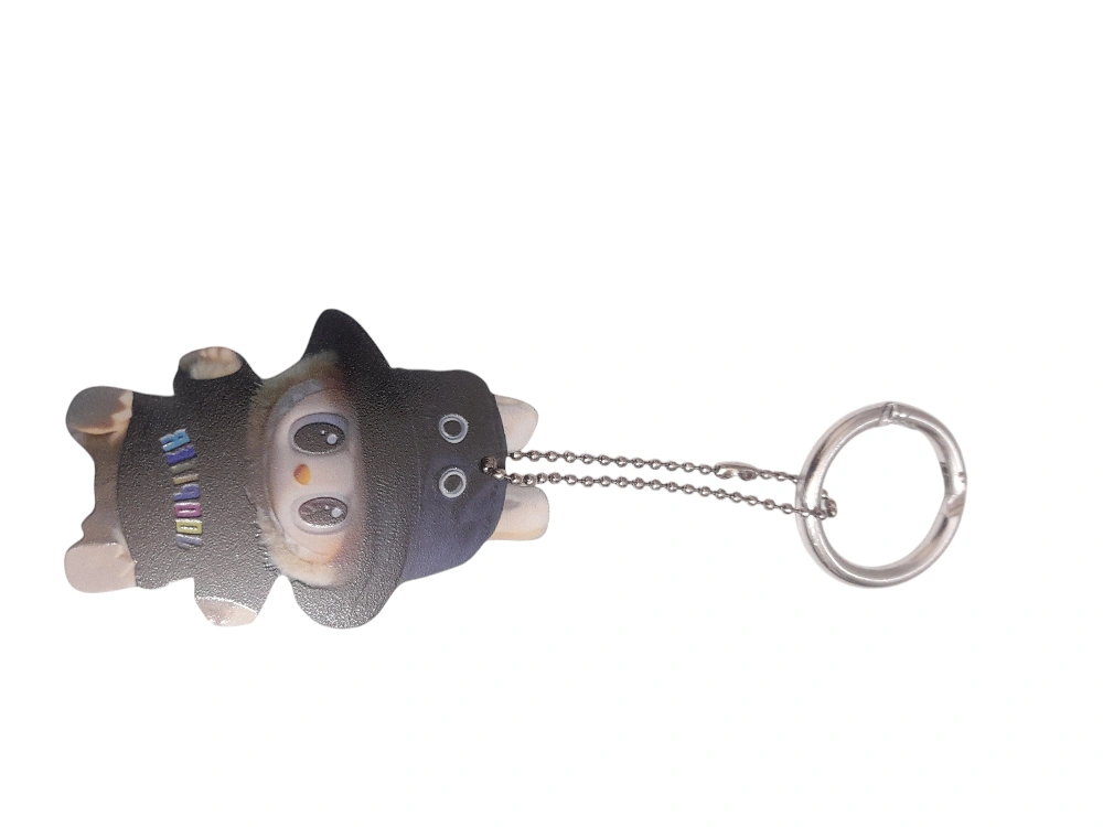 Cute Labubu character keychain. Acrylic keychain with metal ring and chain. Collectible item.