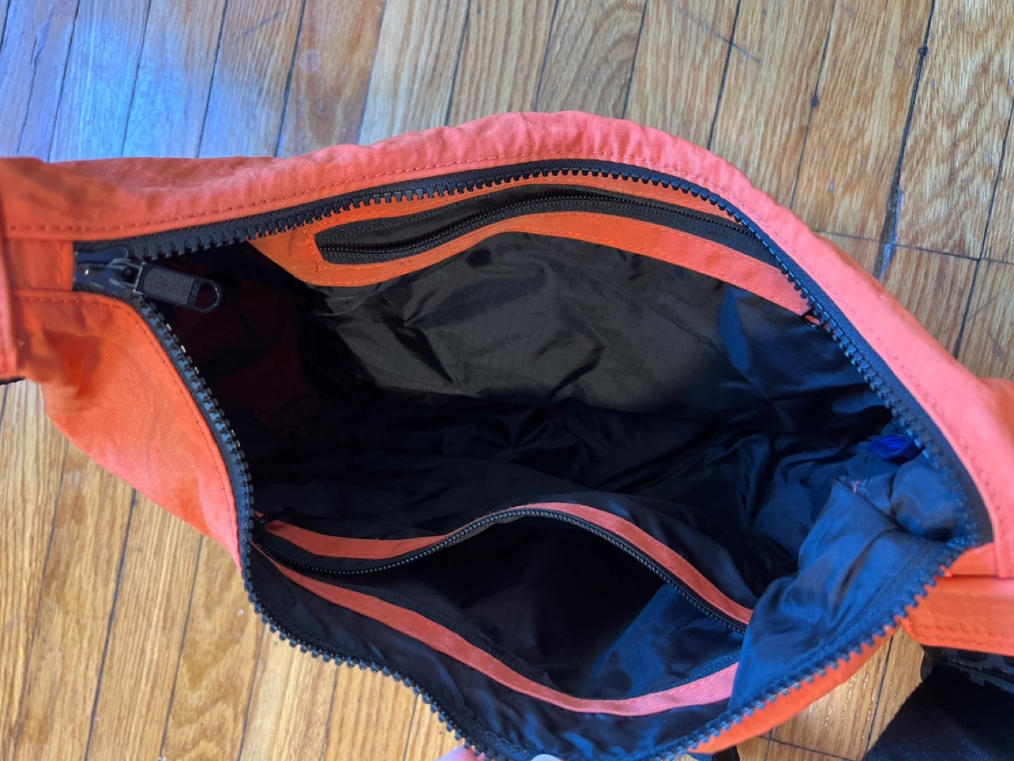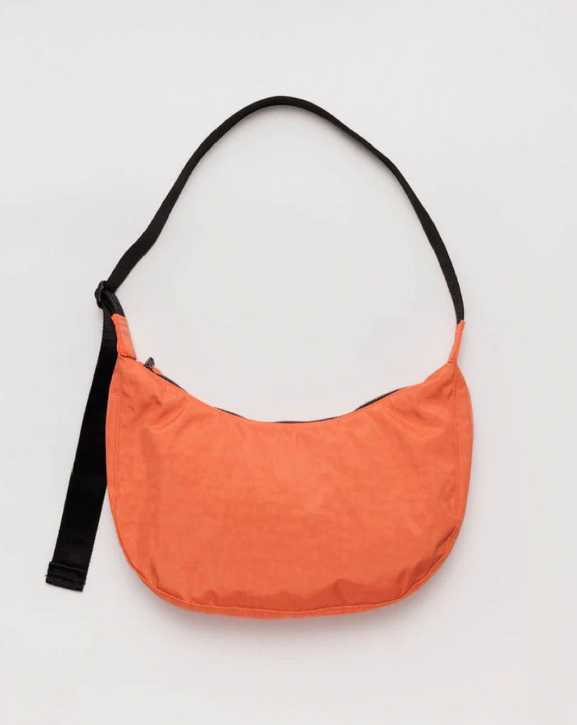 Features Adjustable tonal logo strap Measures 8" × 13 ¾" × 4" 37 ½" adjustable logo strap Recycled heavyweight nylon, recycled ripstop nylon lining Practical doesn’t have to be boring. Our Medium Nylon Crescent Bag is effortlessly casual and large enough to carry more than just the essentials. Wear it slung over your shoulder or crossbody for a hands-free experience. Complete with two interior pockets that make it easy to stay organized. Mint Conditon • used several times only Original retail $79 plus tax