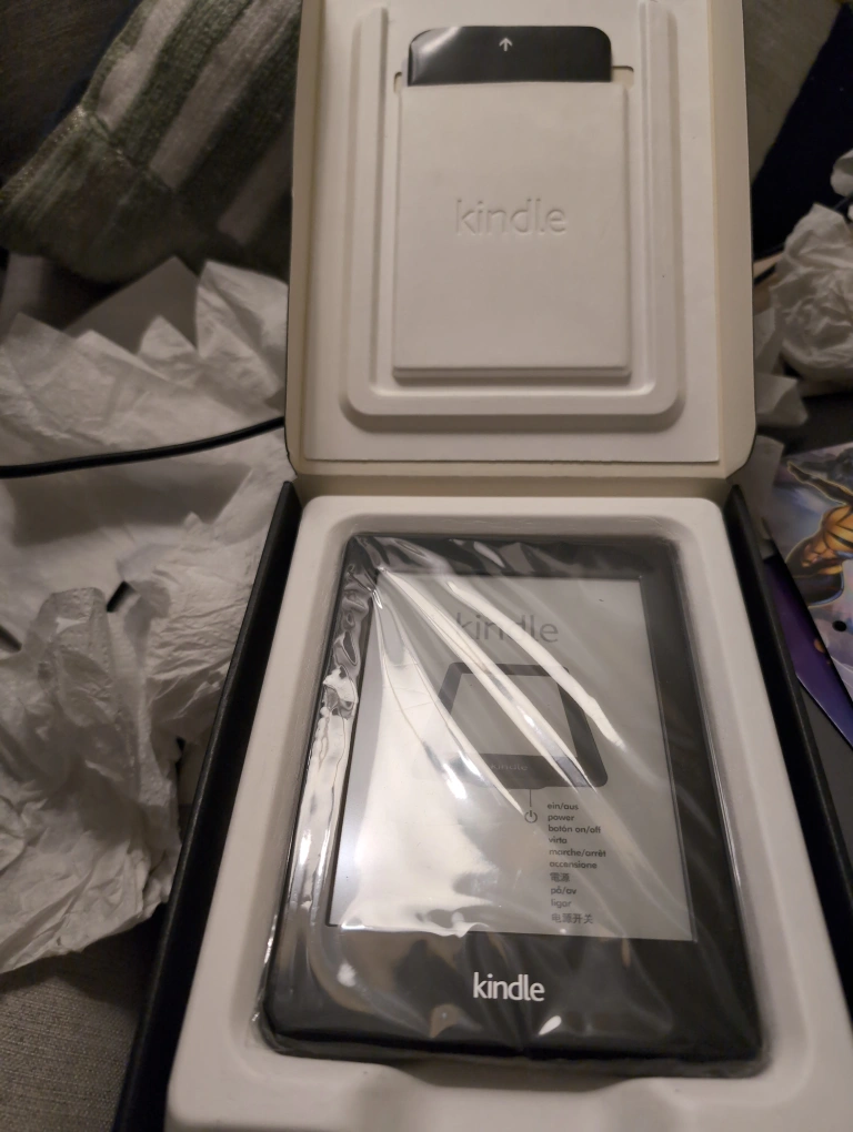 Brand new, unopened Kindle in original packaging. Perfect gift. Includes instruction manual and warranty information.