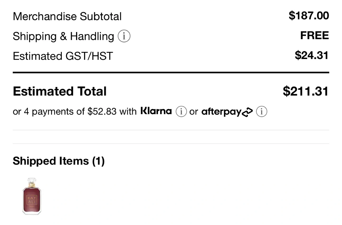 Purchased from Sephora - $211.31 after taxes Pick up North End St Catharines No holds without pre payment No delivery, no shipping