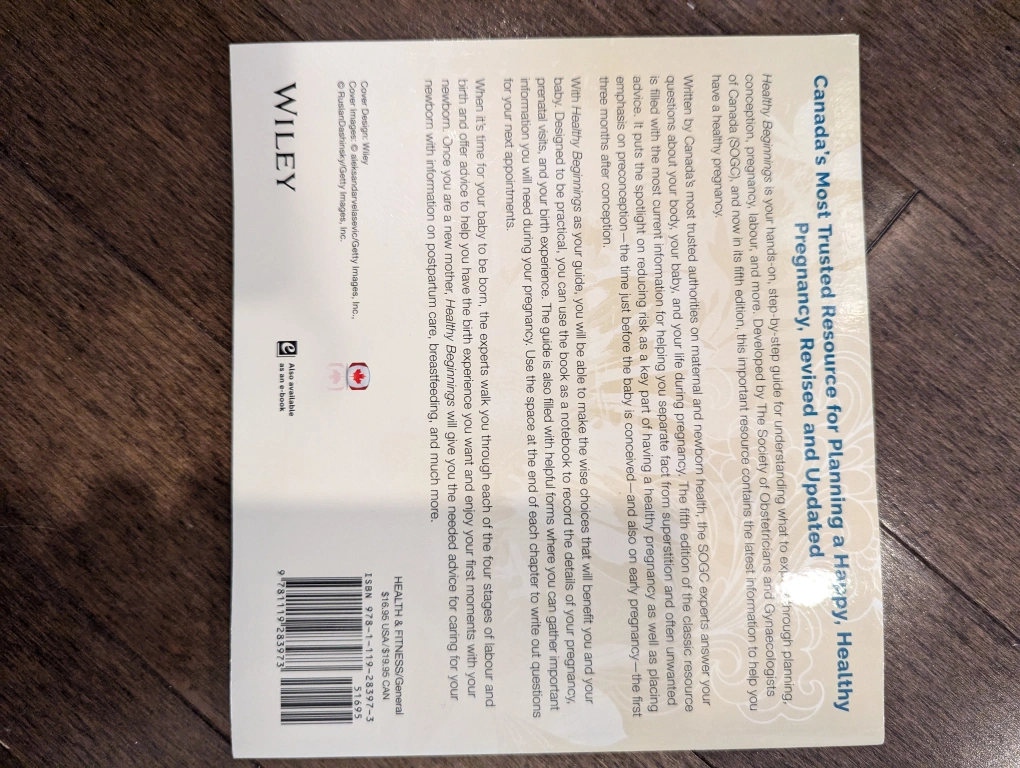5th edition guide. Covers preconception to birth. Includes journal section. Published by the Society of Obstetricians and Gynaecologists of Canada. π Smoke / Pet Free Home π‘