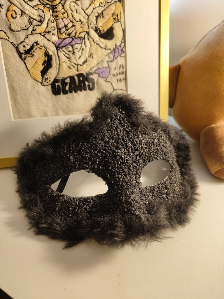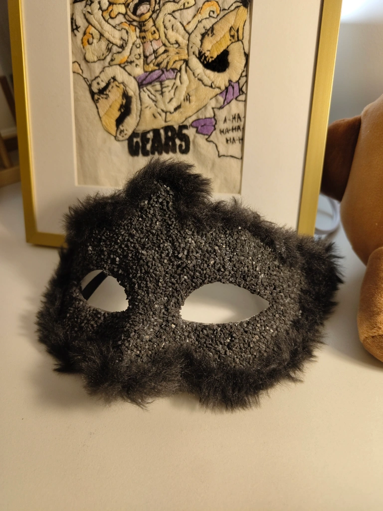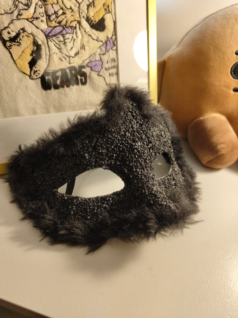 Black anime masquerade cosplay mask. Features soft, furry trim. Unique premium texture. Elastic band for comfortable wear.