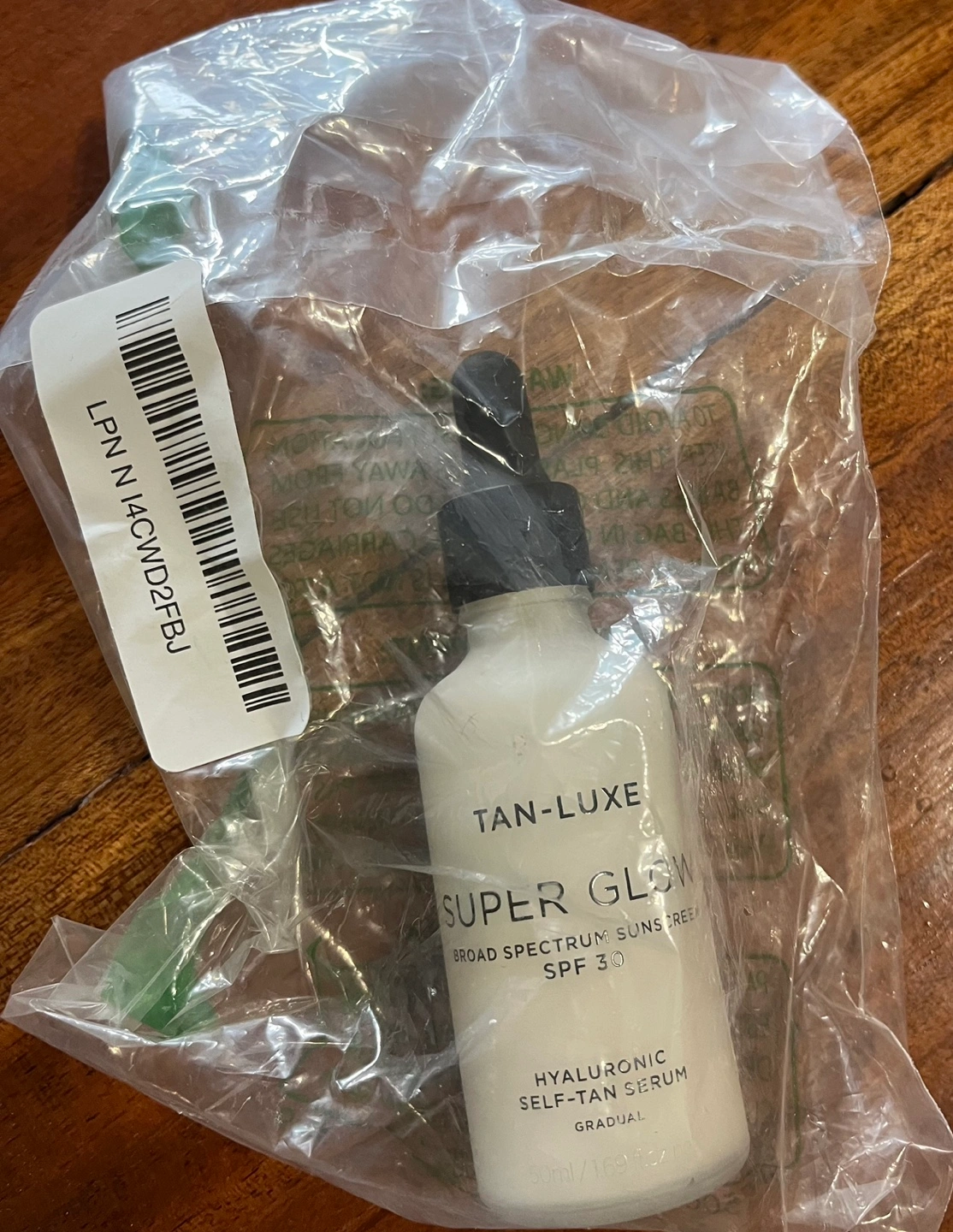 New Tan-Luxe Super Glow Hyaluronic Self-Tan Serum. SPF 30. Gradual tan. Comes in original packaging. Amazon retails for $75. Only selling for $25.
