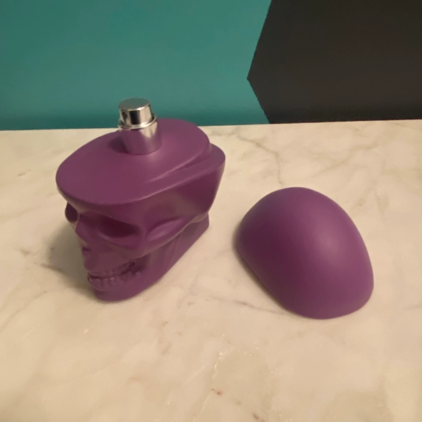 New Skulls & Roses for Her purple skull-shaped perfume bottle. 3.4 fl oz / 100 ml. Unique collectible item. Has only been sprayed 2x to test. Skulls & Roses for Her is a warm, sugary fragrance made of strawberry, violet leaf, honeysuckle and caramel. No longer available in stores or online - grab this amazing fragrance for a great price π
