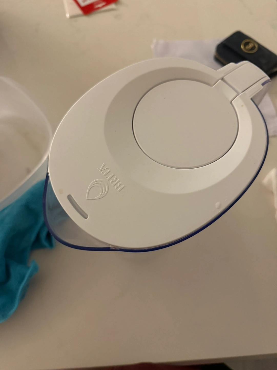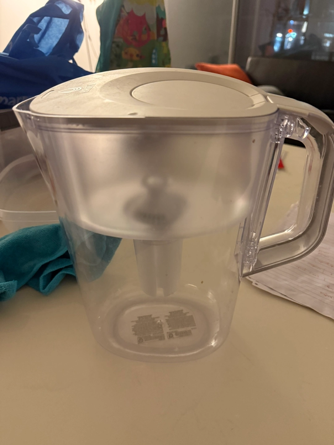 Brita water filter pitcher. Clear plastic with a white lid. Ready for a new filter. Used once. I bought a distiller so selling it as I no longer need it. The filter is newly replaced.