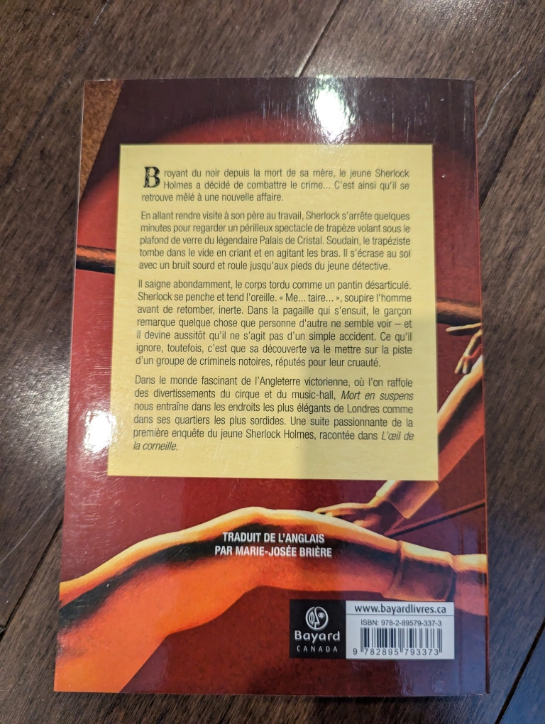 Brand new - Never read. French language novel. Young Sherlock Holmes adventure. Paperback book. π Smoke / Pet Free Home π‘