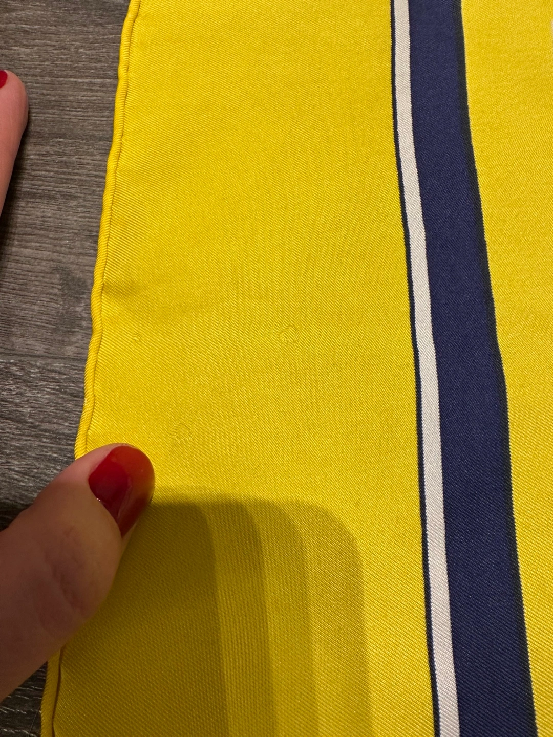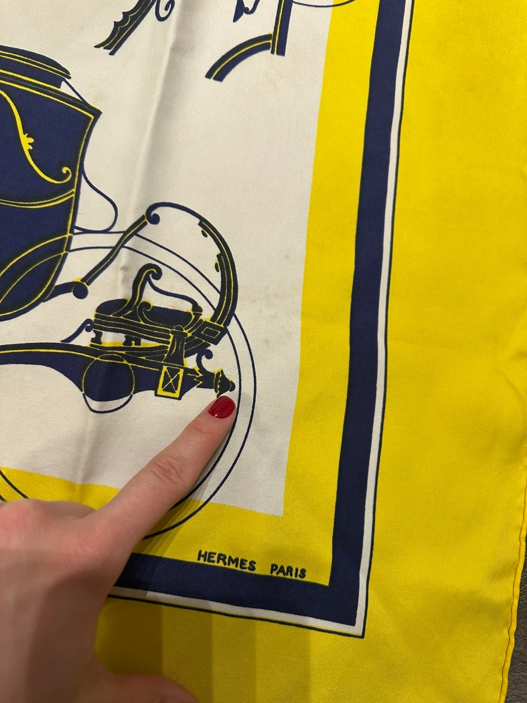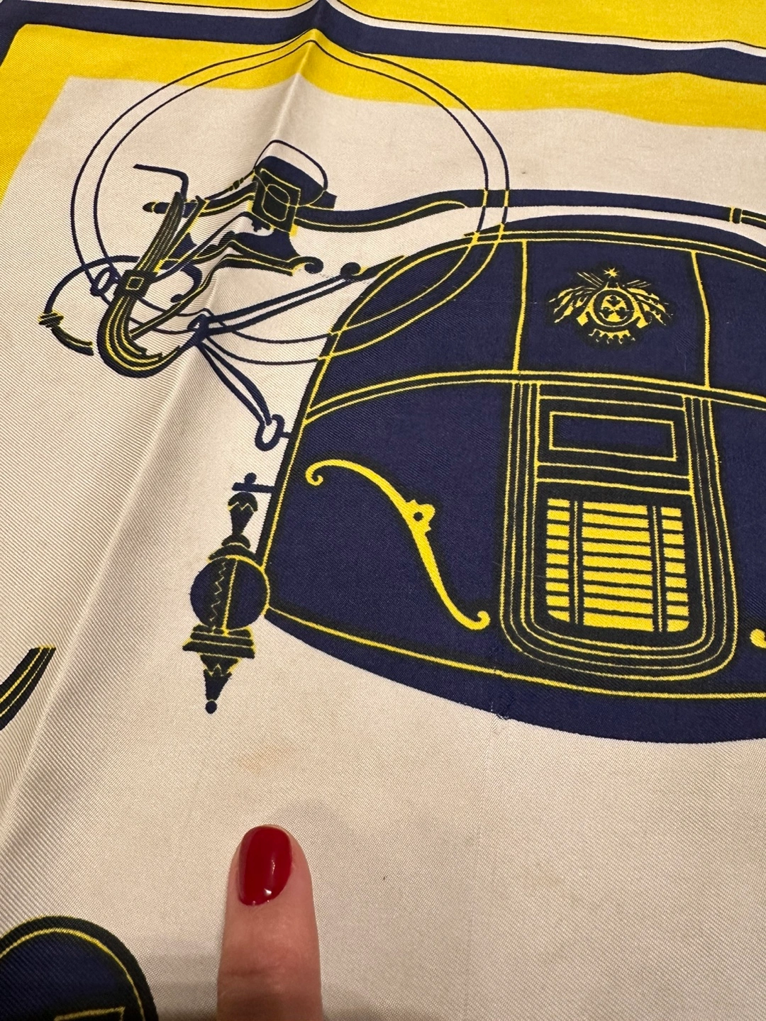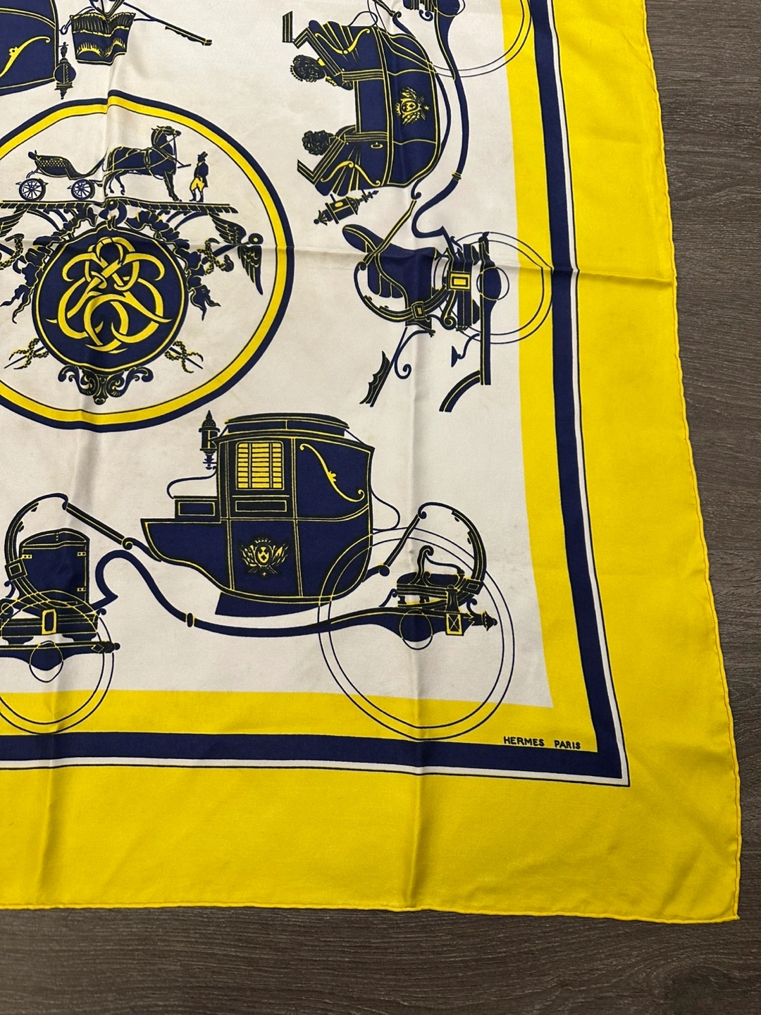 100% Authentic Hermes Scarf Silk Ex Libris Yellow Vintage rare 88 cm x 86 cm Good pre-owned condition - imperfections are shown in Photos Please check all photos and ask questions
