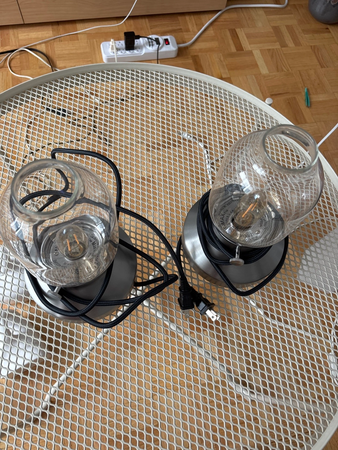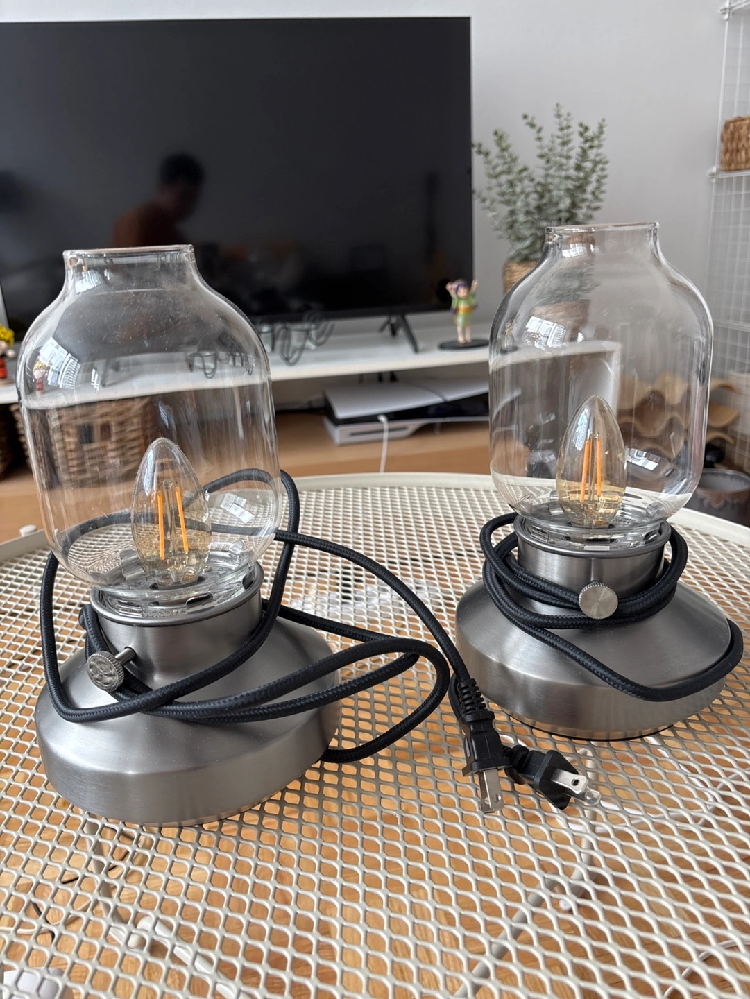 Two grey metal and glass table lamps. Dimmable bulbs included. Great for bedside tables or desks. Pre-owned, good condition. This is the silver version, not sure if you can still buy it, rare. Currently $25 plus tax each at IKEA, selling $20 each or $30 for pair.