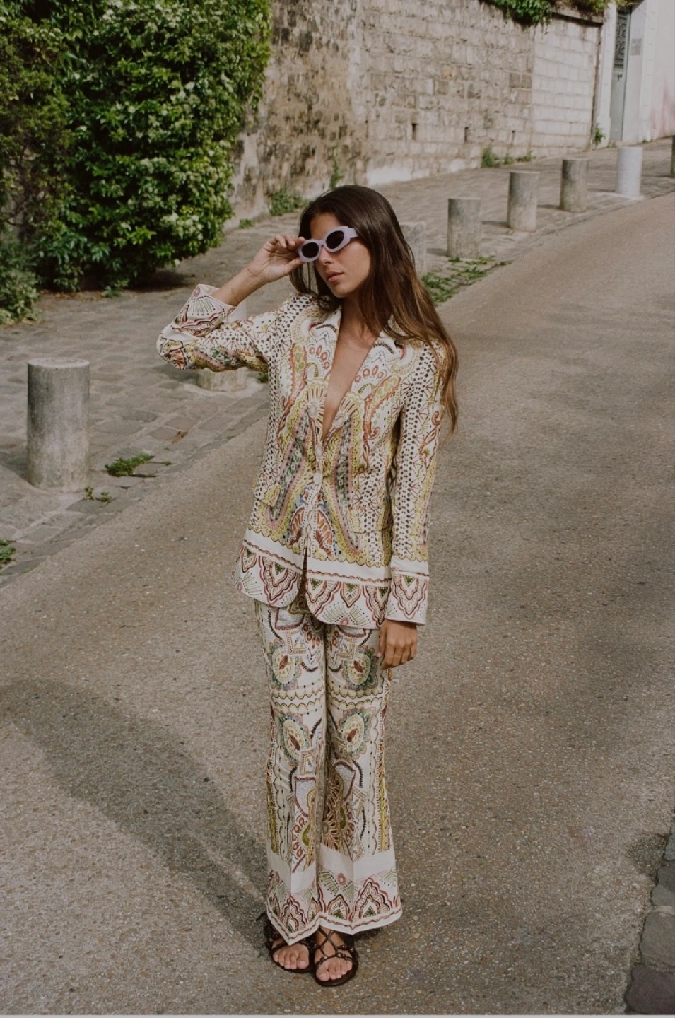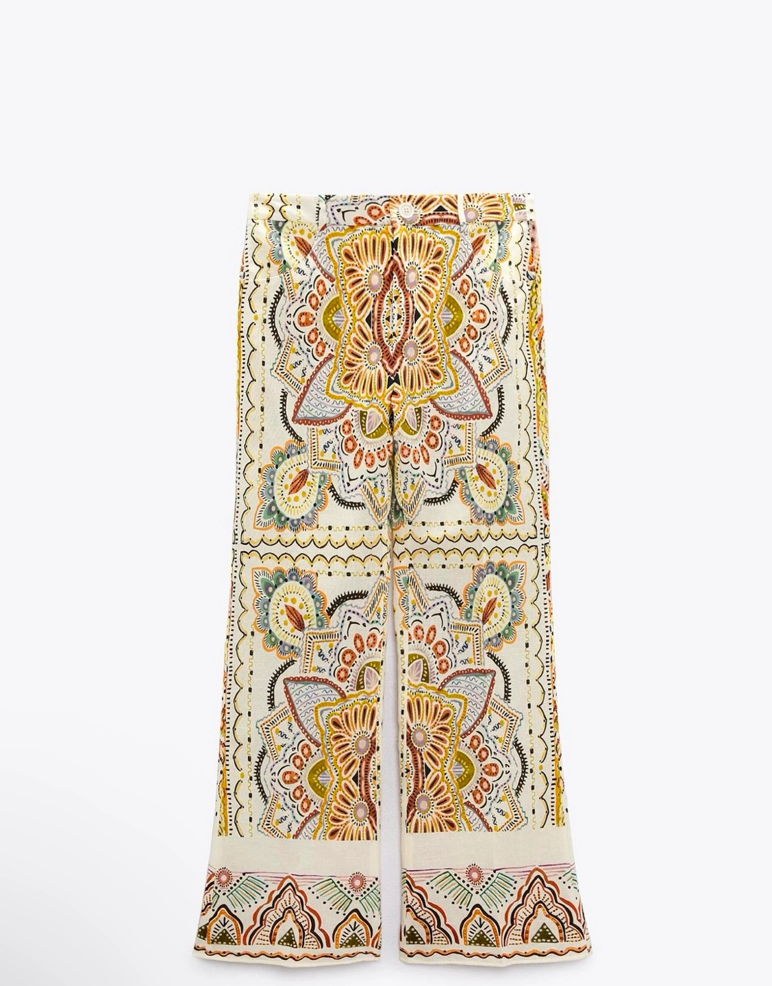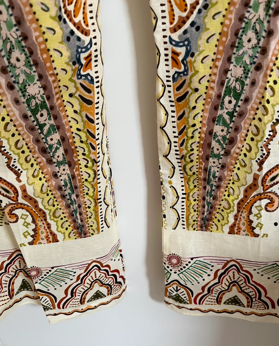 Brand new with tags. Wide-leg trousers. Size medium. Paisley print. Cream coloured base. Multicoloured pattern.