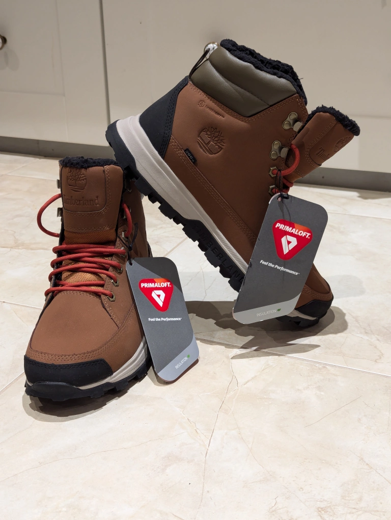 Brand new with tags! Brown leather Timberland waterproof boots. Primaloft insulation. https://www.timberland.ca/en-ca/p/featured-collections/waterproof/mens-waterproof-88504/mens-treeline-waterproof-insulated-boot-TB1A678CF13
