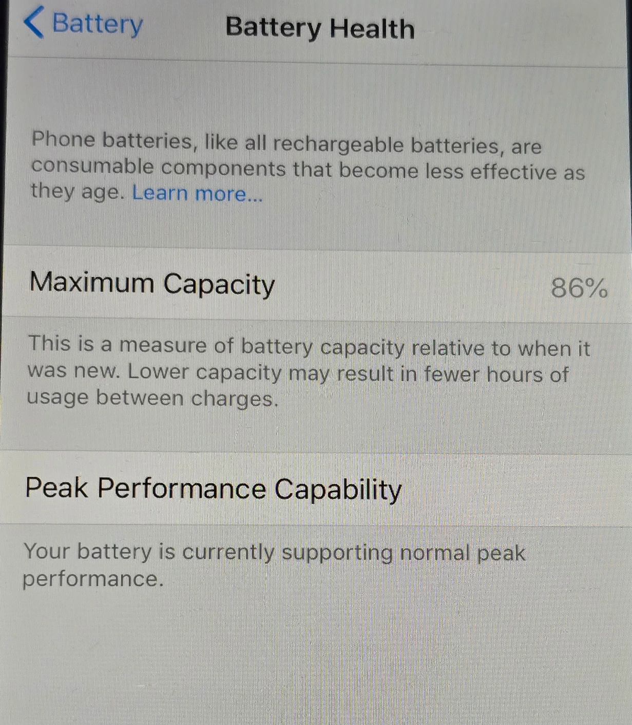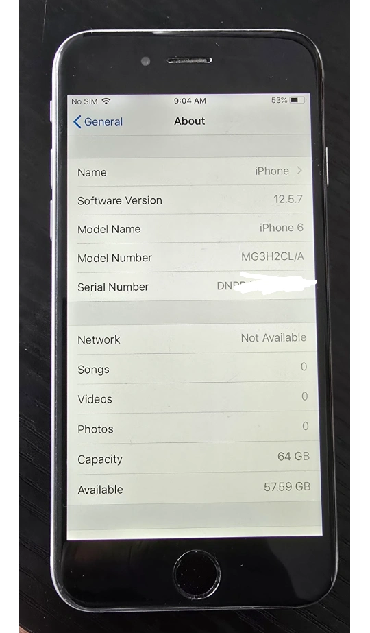 Used iPhone 6. Space grey. 64 GB storage. 86% battery health. Like new condition. No charging cable provided.