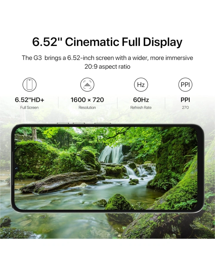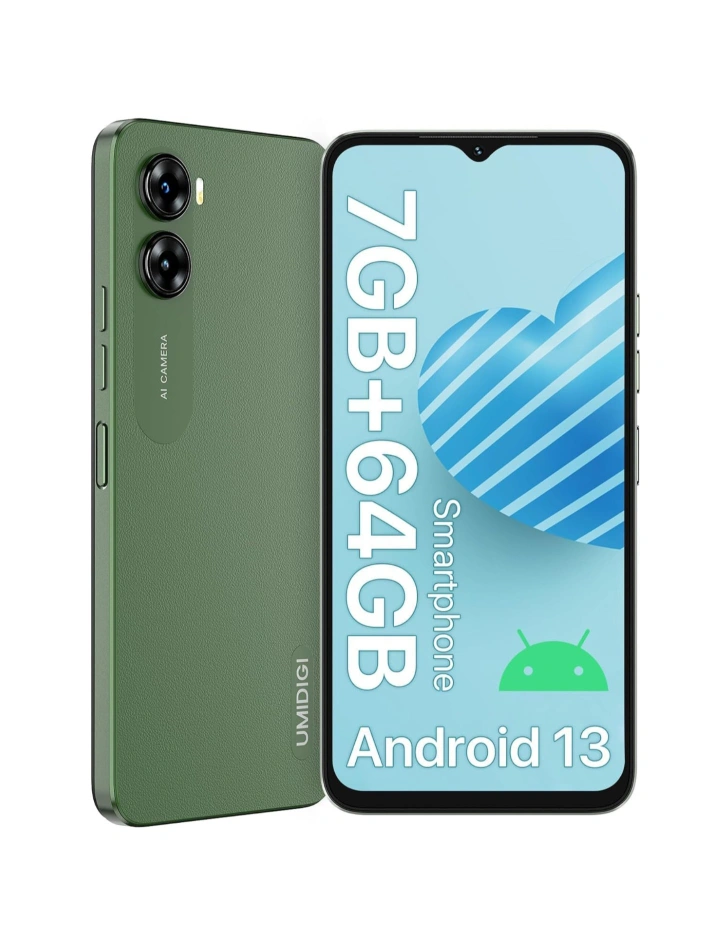 UMIDIGI G3 Android 13 smartphone. 7GB+64GB storage. Green colour. Features Helio A22 processor, 6.52" display. Dual SIM.