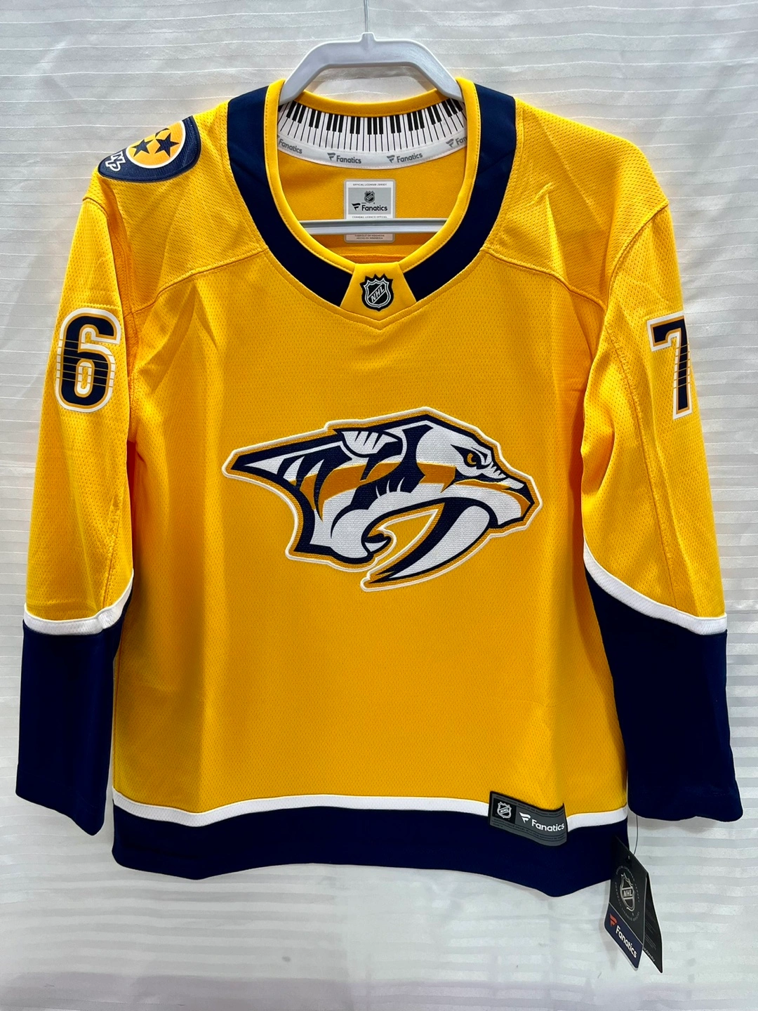 Fanatics brand NHL jersey. Youth large size. Nashville Predators. Subban #76. Yellow, navy, and white colour scheme.