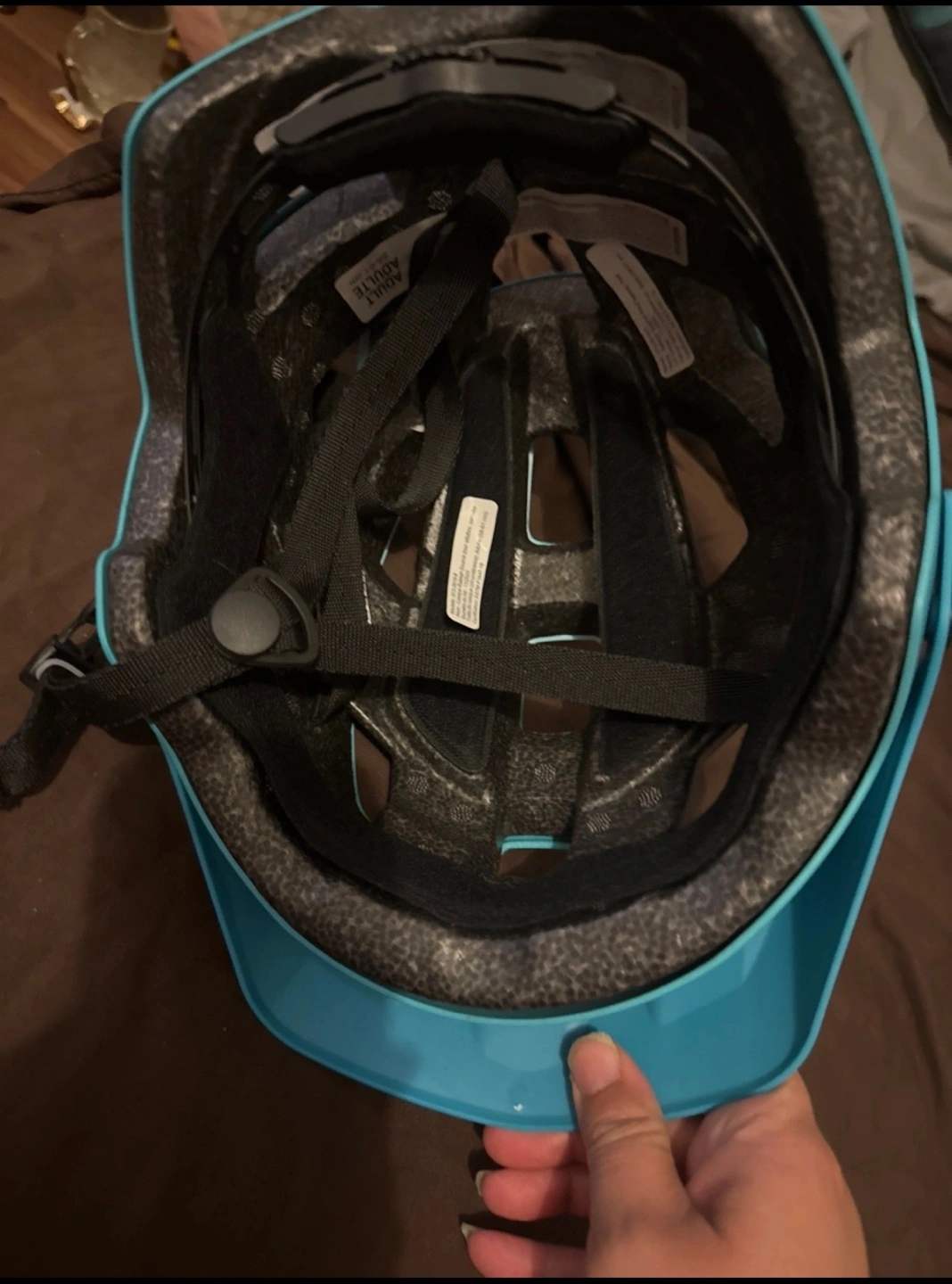 Lightweight cycling helmet. Adjustable straps. Visor included. Great for commuting or recreational cycling.