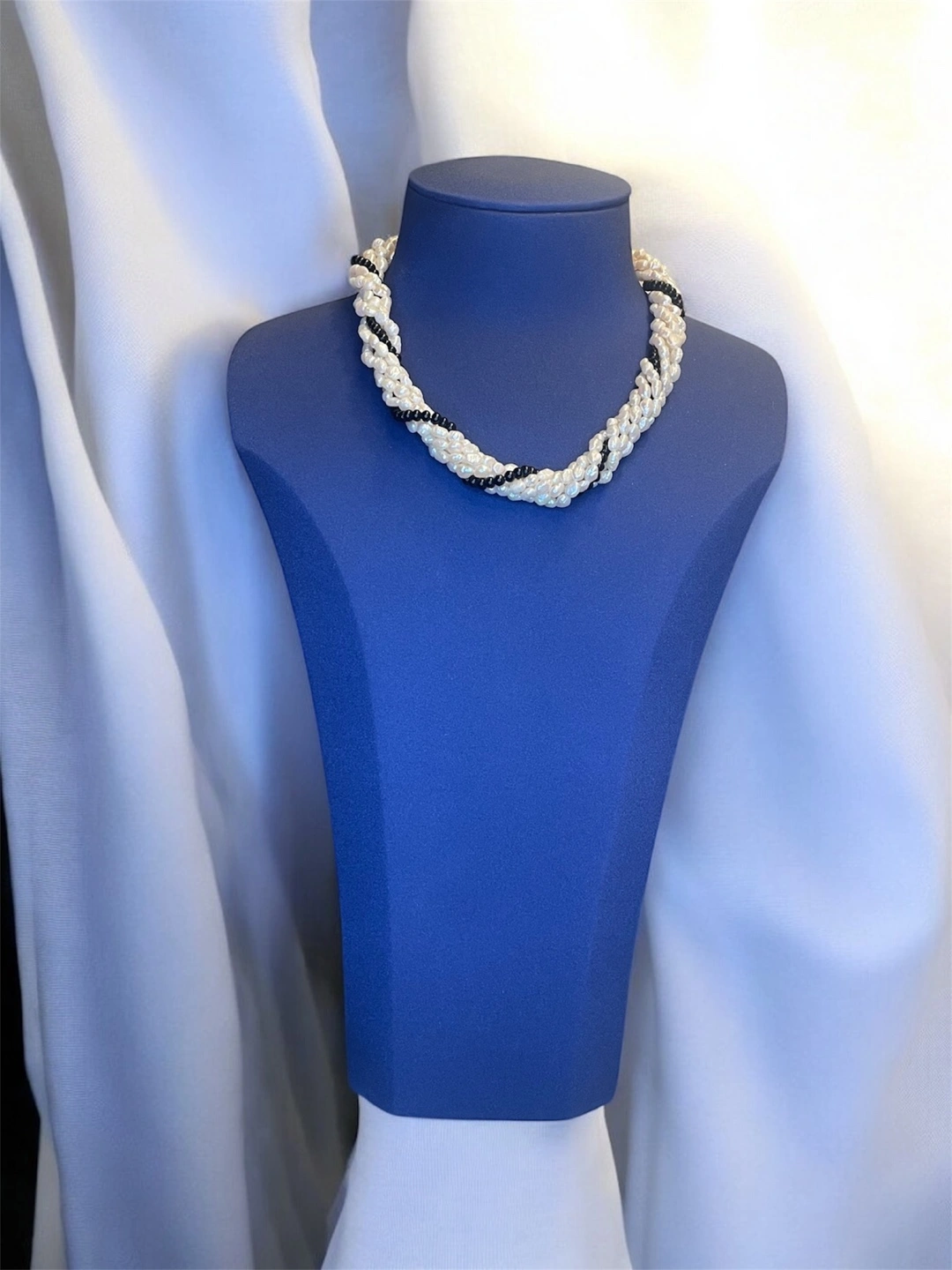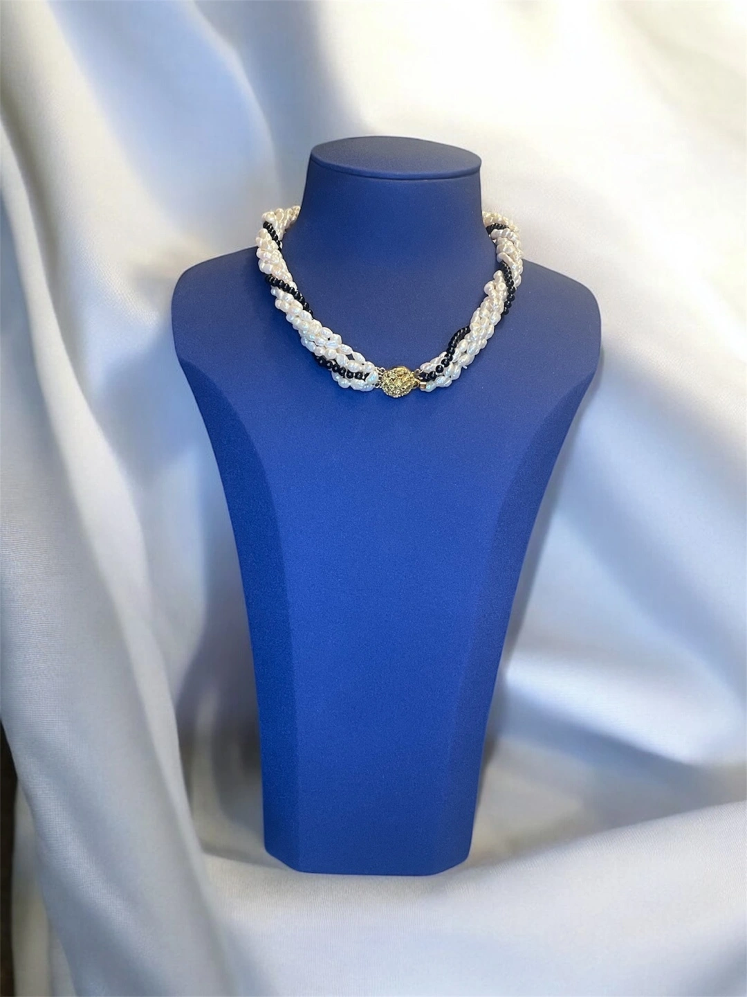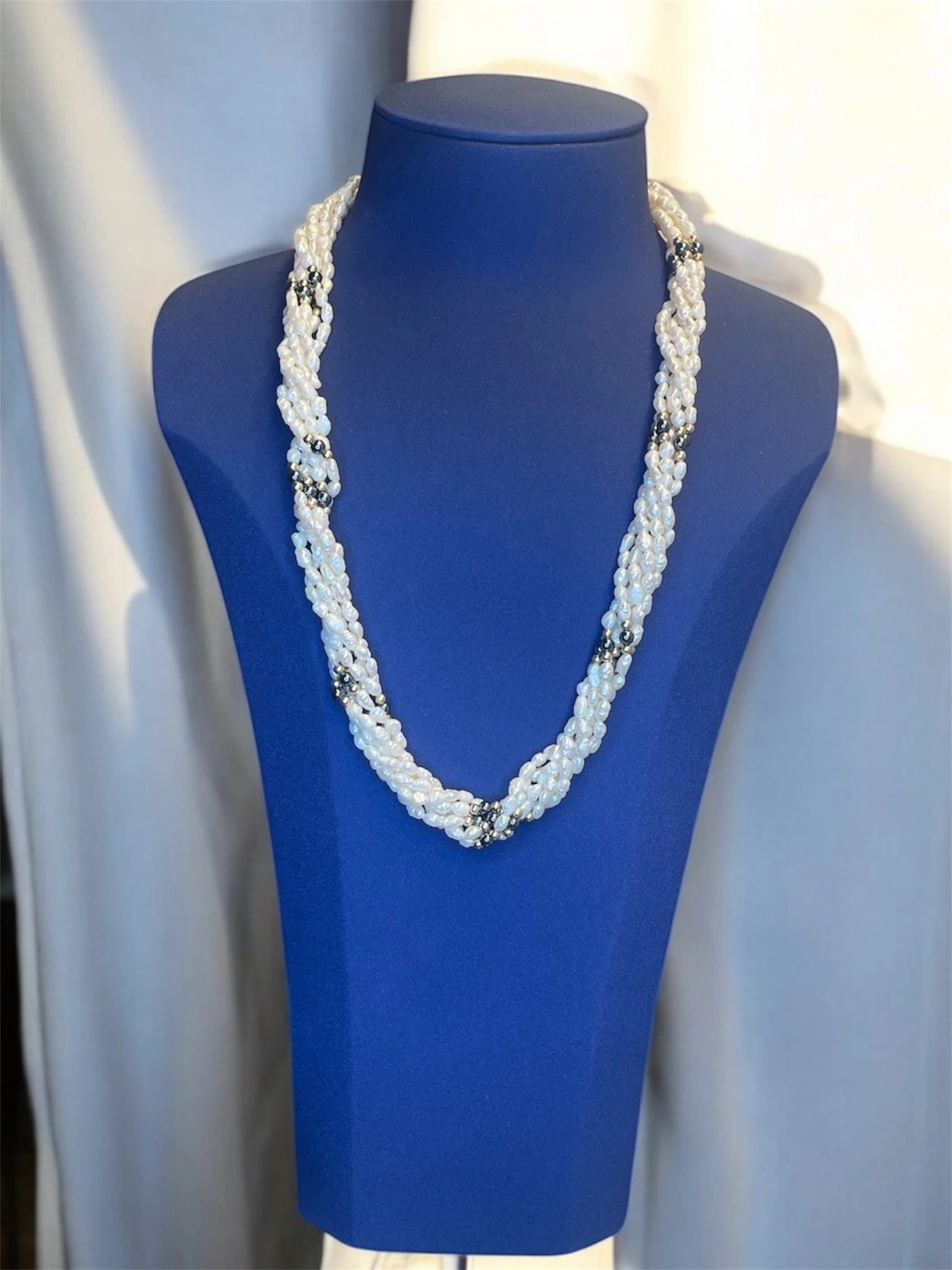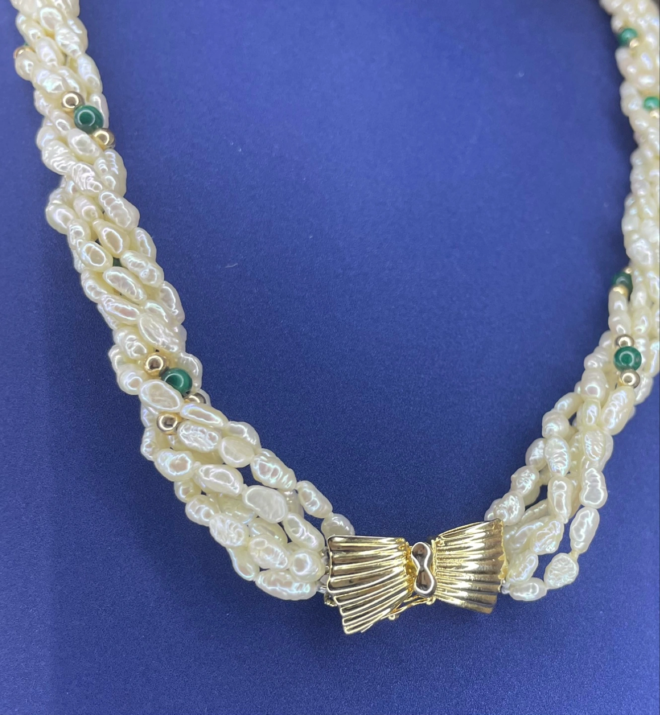 Elegant multi-strand necklace. Features creamy pearls, interspersed with gold and grey beads. Gold clasp. Lovely addition to any jewellery collection. Made in HK 30years ago. Just got these beautiful necklaces from a retired jewelry shop owner. All the necklaces are very well kept and new! The original prices are much higher and these pieces are truly vintage but totally new! Gift bags available for $10