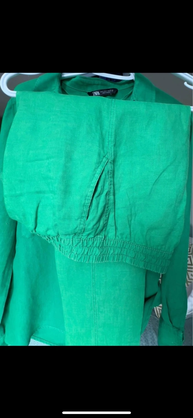 Zara 100% linen shirt, and H&M linen pants in similar color. The last picture shows the color difference. Worn sparingly. Excellent condition.